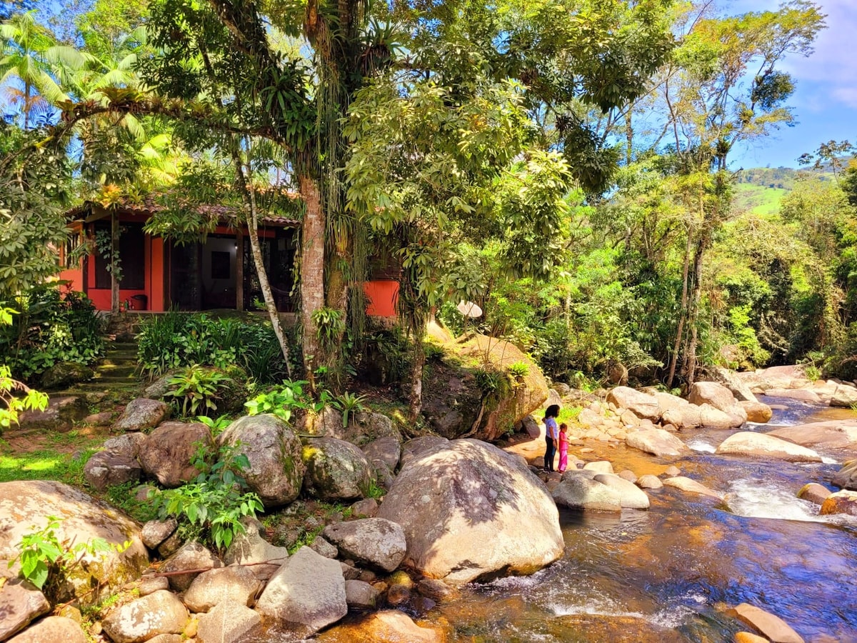 Venha desfrutar desse refúgio em Paraty Aqui você ficará completamente conectado com a natureza Com arquitetura bucólica,a casa é um refúgio de frente p o rio taquari, de aguas calmas e cristalinas Dormir e acordar com o som das aguas, ouvir o canto dos pássaros, ou apenas ficar apreciando as belezas da serra da bocaina, em nosso jardim privativo, relaxando na rede, é simplesmente ÚNICO Perfeita para casais em busca de muita paz e tranquilidade, e com assistência personalizada dos anfitriões