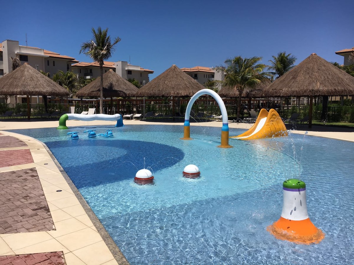 Resort: LOCALIZADO EM FRENTE A PRAIA! ENERGIA INCLUSA NA DIÁRIA TELA/REDE DE PROTEÇÃO PURIFICADOR DE ÁGUA-NÃO TROCA GARRAFÃO Apto Ar Cond. 115m/3 Suítes: CAMA: 1 KING, 1 Queen, 2 Solteiros e 3 Bicamas/Área de Trabalho/MÁQ LAVAR ROUPA Área Comum: 2 Complexos piscinas/restaurantes Beach Tênis/Vôley/4 Quadras de tênis/2 Poliesportivas/Campo de futbol/futmesa/Campos de golf/Caiaque/2 Saunas/Jacuzzi/Espaço kids/Parquinho/Sinuca/Enfermaria/Academia 5 min de carro Beach Park/Supermercados/Drogarias