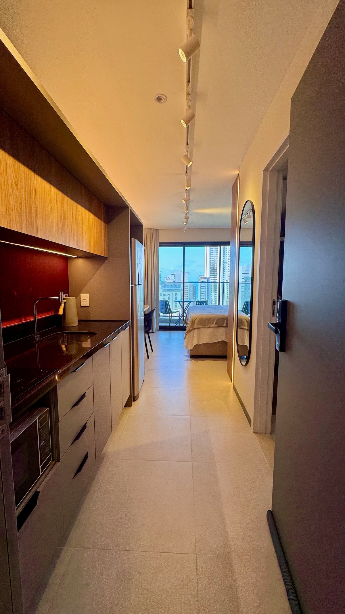 Studio Marola – Sofisticação com vista para o mar em Fortaleza Viva uma experiência única no Studio Marola, localizado no 18º andar do exclusivo Beach Class Meireles. Um espaço elegante, pensado para quem valoriza conforto, praticidade e tranquilidade, com uma vista deslumbrante do mar e a apenas 500m da Praia de Iracema, em bairro nobre da cidade. Prédio com infraestrutura de alto padrão: rooftop com vista panorâmica, piscina aquecida com borda infinita e academia moderna e restaurante.