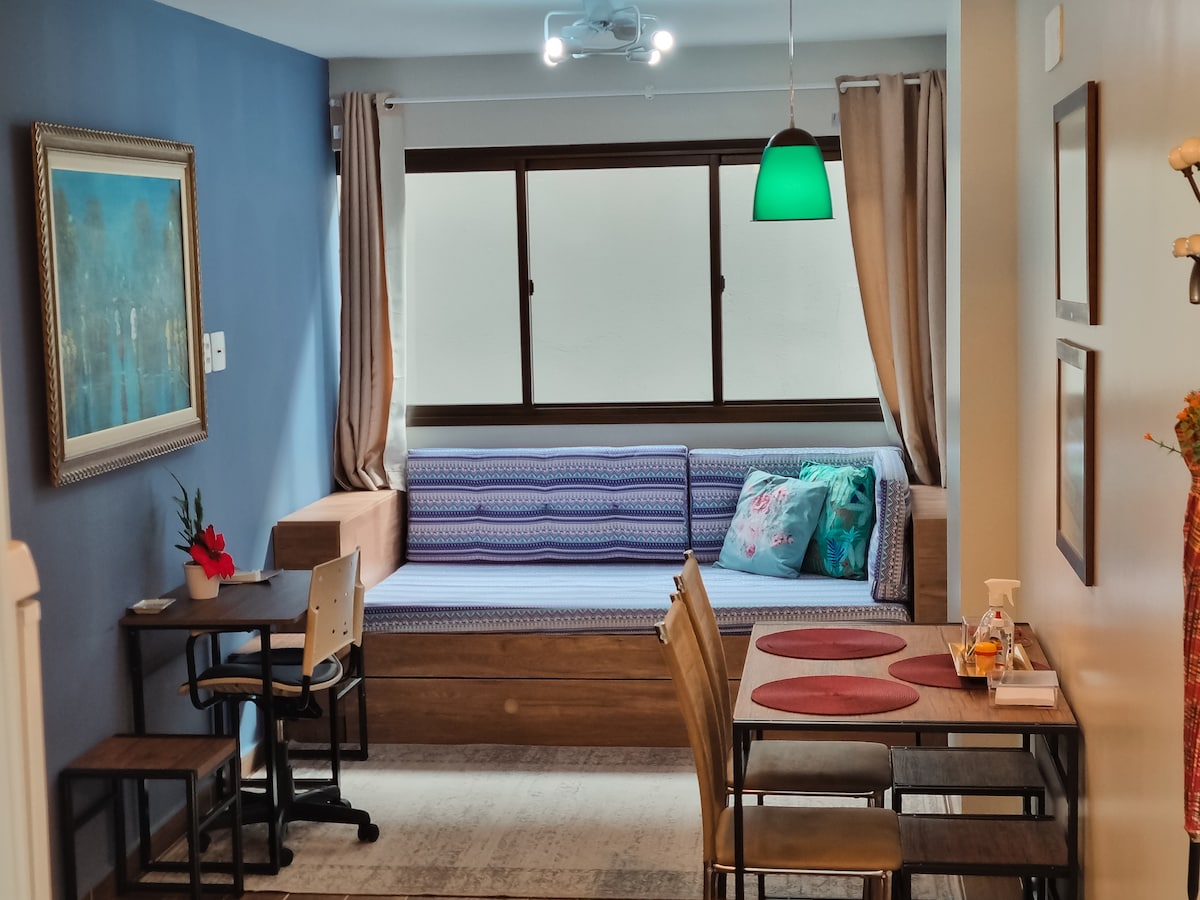 Apartment in the Helbor My Way Building, located in front of Fortaleza's Beira-Mar, Apartment is on the 13th floor, has 1 parking space. You can do everything on foot, close to the car rental office, seaside market, restaurants, bars, pharmacies, supermarket and exchange offices. Clean and sanitized standard apartment in the best area of the city. There is no extra energy fee!