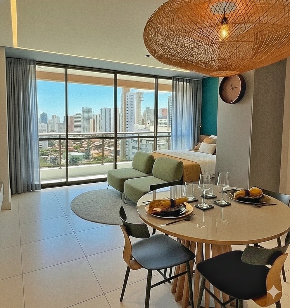 É um apartamento recém construído, com conforto e segurança, com proposta voltada aos aluguéis de temporada e de simples acesso. Fica localizado em área nobre de Fortaleza, à 2 km da Beira Mar, pronto pra home office, com garagem no térreo. Nas imediações encontra-se uma grande variedade de Supermercados, restaurantes, bares, lojas, shoppings, farmácias, pet-shop"s, etc