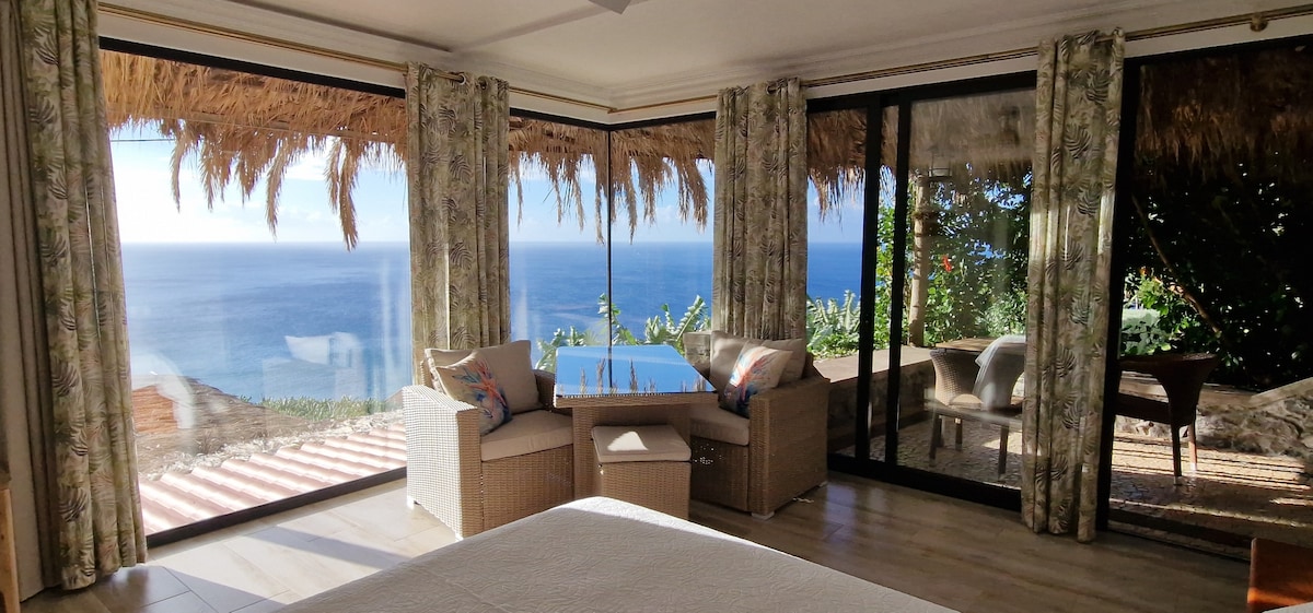 Wake up to absolute mind blowing scenery in this mezzanine featuring floor to ceiling high windows facing the island's stunning coastline, often requiring a second look to truly appreciate the beauty that this magnificent island has to offer. The mezzanine accommodates two people, has an ensuite bathroom, a fully equipped kitchen and also has access to its own private garden. Needless to say, our infinity pool is also there for you to enjoy and relax. Free parking is available in Jardim do Mar.