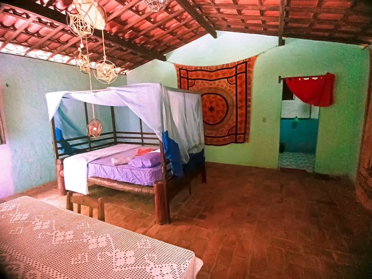 OFERTAS SUPER INTERESSANTES PARA estadia mensais incluindo o REVEILLON e o mes de JANEIRO. PREÇOS SOB CONSULTA Um dos três chalés da propriedade, situado em meio ao nosso exuberante jardim orgânico, protegido por mangueiras e cajueiros. O chalet tem dois quartos contiguos e pode hospedar até 5 hospedes