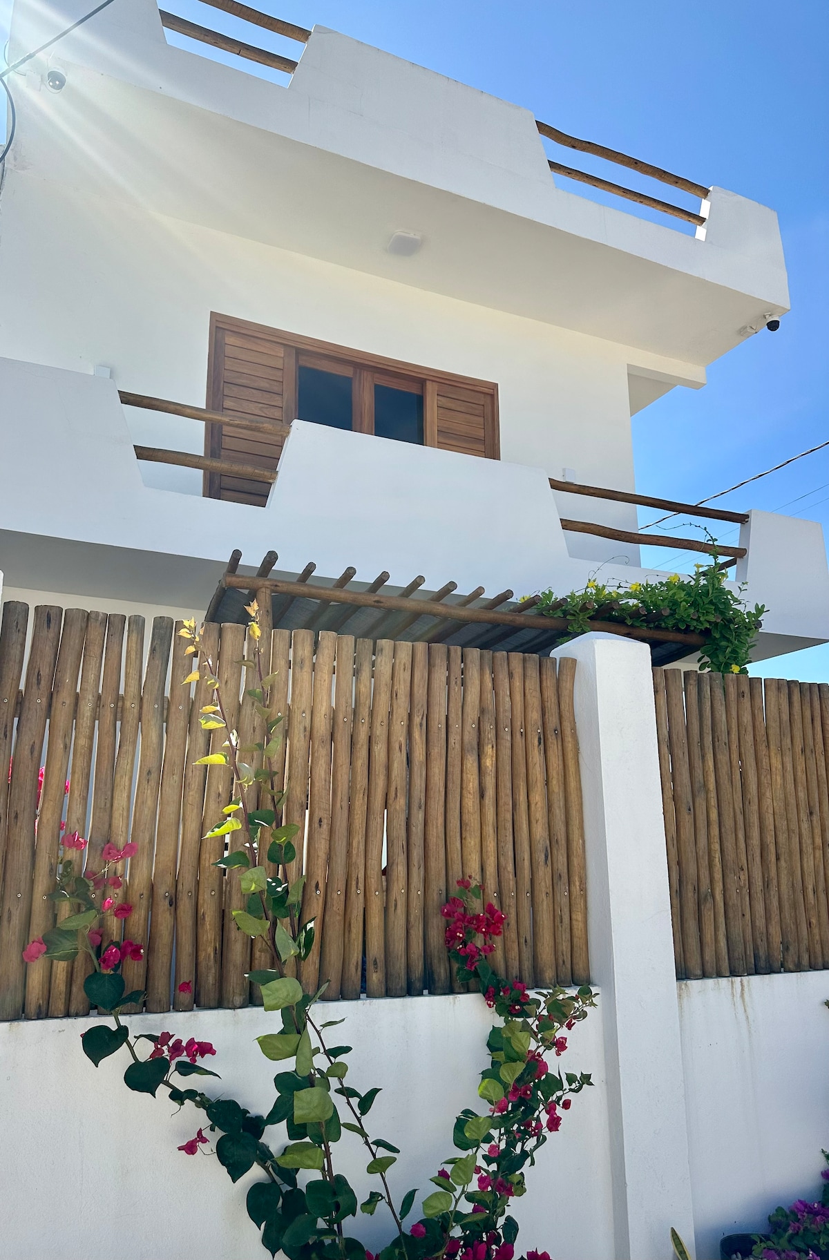 Casa Cantinho no Mar is a beautiful, spacious beachfront home with spectacular rooftop terrace - perfect for toasting the sunset every evening! 2 bedrooms (1 with varanda) with air conditioning and en-suite bathrooms + large desk/workspace, fully-equipped kitchen, social bathroom, dining room, Smart TV, WiFi, patio and deck. Space to wash/dry/keep kiting equipment. *Second bedroom can be 2x single beds or 1x comfortable Queen. Housekeeping daily. Easy walk to town, markets and restaurants.