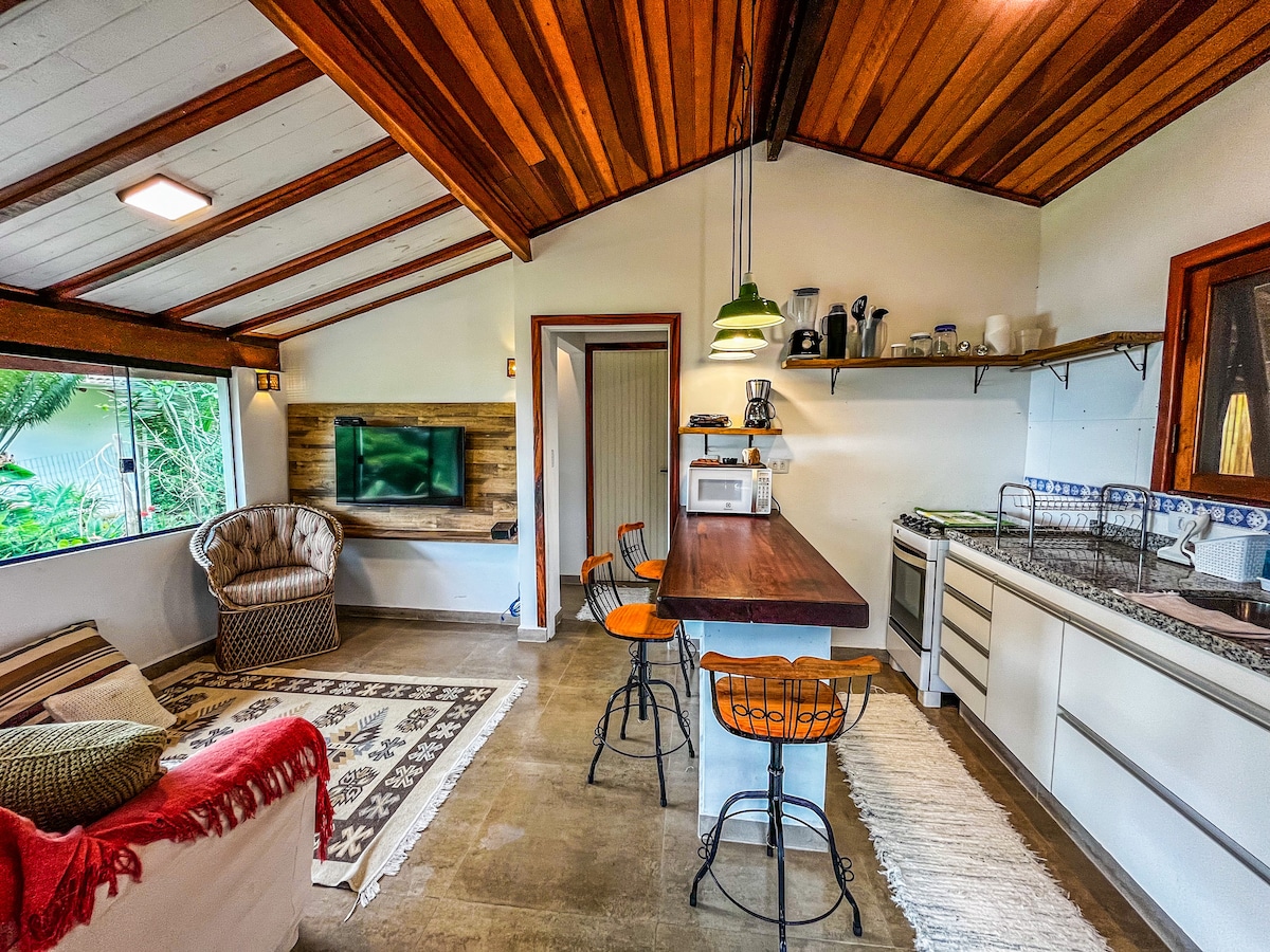 Um bangalô inteiro no meio da floresta com piscinas naturais e cachoeiras no "quintal". É isso mesmo! Amor na Floresta é o destino perfeito para quem deseja se hospedar em plena mata atlântica, repleto de riquezas naturais e culturais. Com arquitetura e decoração balinesa, o bangalô integra-se à natureza, cercado por praias, rios, piscinas naturais, cachoeiras e trilhas. Numa vila quilombola e de pescadores, faz parte área de preservação do Parque Estadual da Serra do Mar e Parque da Bocaina.