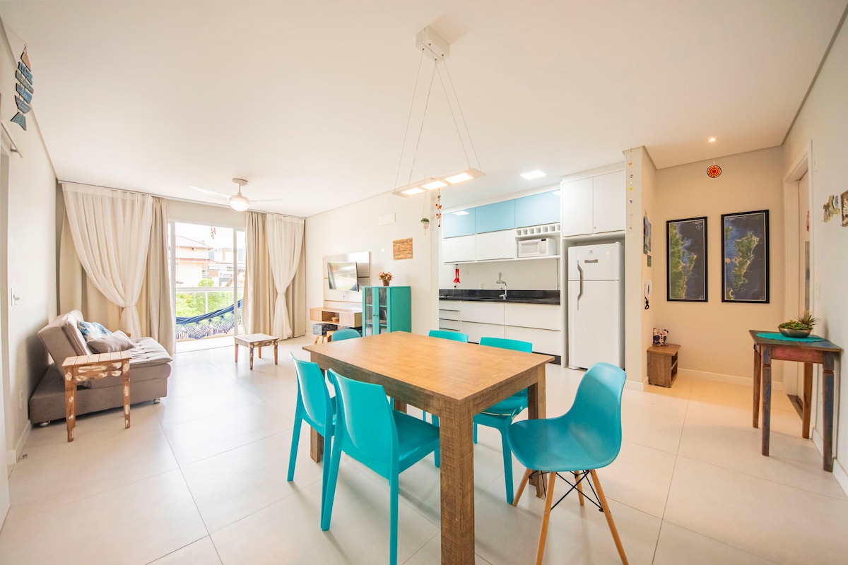 New, clean and comfortable studio, with air conditioning and just 30 meters from the beach. It is located between the beaches of Campeche and Morro das Pedras. The Studio has a 32-inch Smart TV, 200Mb Wi-Fi, a full kitchen - fridge, freezer, stove, gas oven, microwave oven, electric oven and coffee maker. The living room is integrated and the very comfortable sofa bed can accommodate a third guest. The beach is quiet, ideal for surfing, diving, kitesurfing or just relaxing by the shore.
