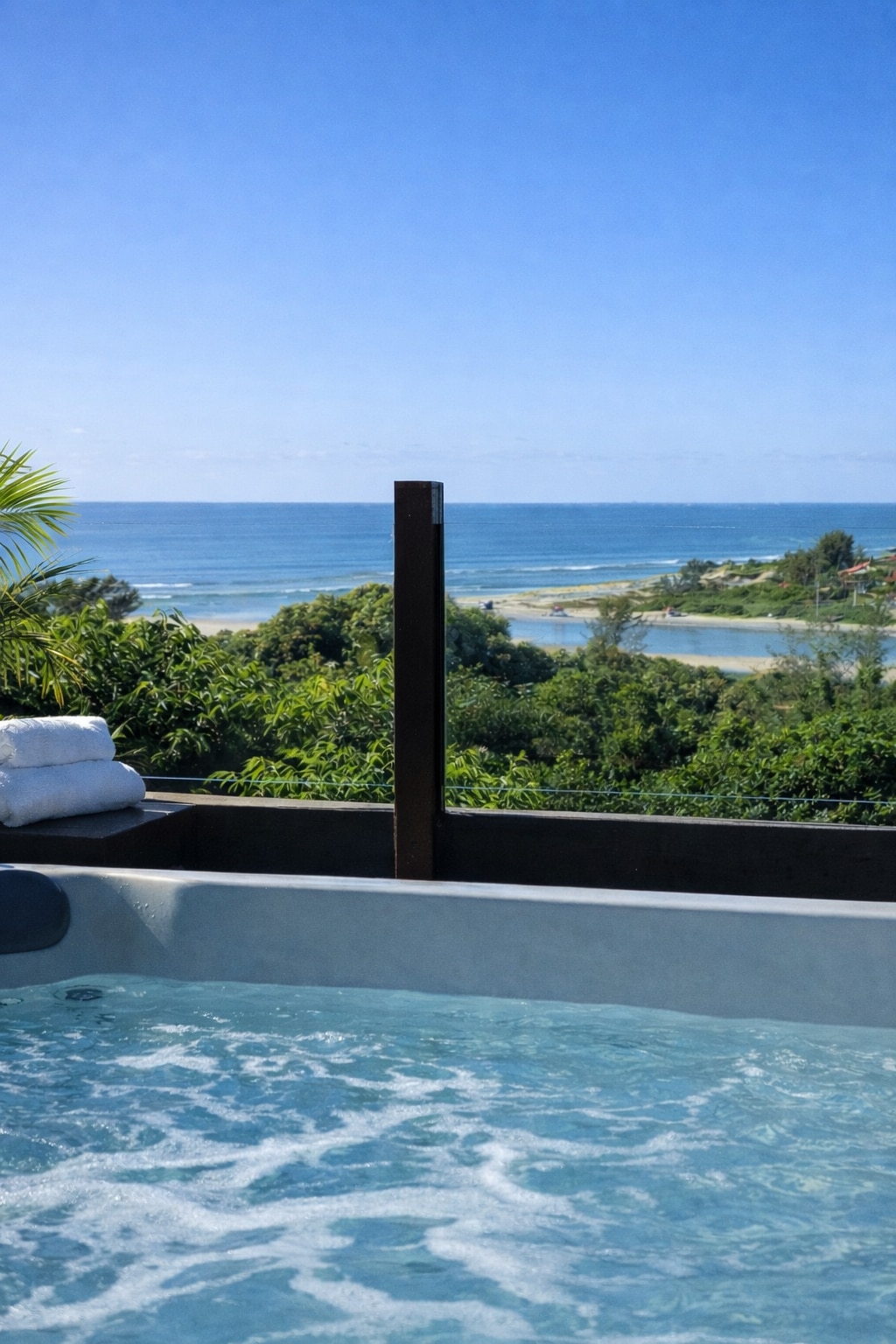 Incredible location in Praia do Rosa: just 100 meters from the beach and 400 meters from the town center. Buda da Lagoa combines spectacular ocean views with high-quality details. The houses offer spacious living areas, a fully equipped kitchen, decks with grills, Smart TVs, air conditioning in every room, daily cleaning service, and 600 Mbps fiber optic Wi-Fi. Ideal for enjoying time with family or friends, connecting with nature, and relaxing without needing a car.