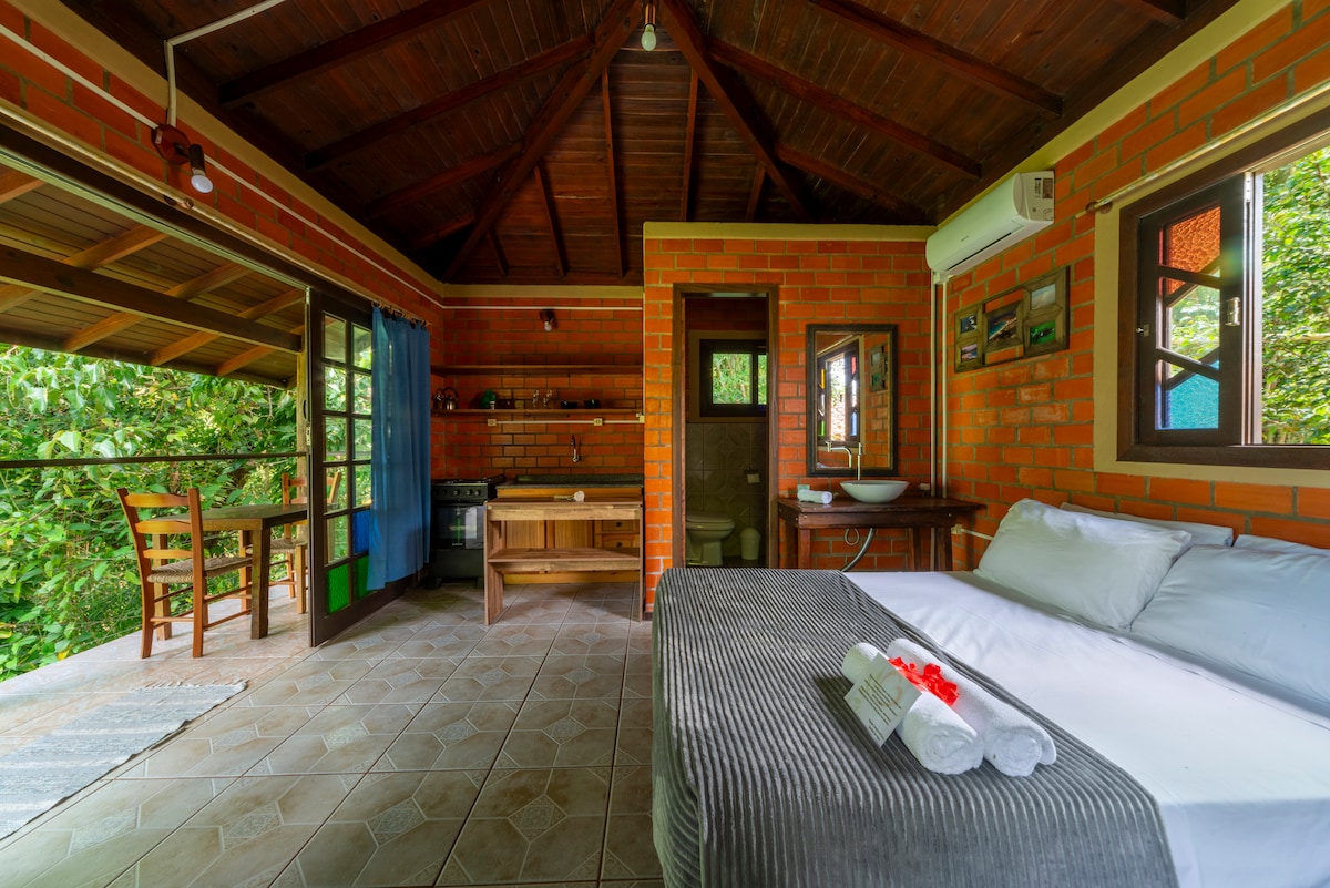 Desfrute a experiência de um apartamento completo com uma vista deslumbrante para a lagoa de Ibiraquera. Com uma janela do teto ao chão, você nem precisa sair da cama para contemplar o sol nascendo, ao som dos pássaros ao amanhecer. Situada em um terreno de 4.000 metros quadrados, a hospedagem possui acesso exclusivo à lagoa. Em um ambiente espaçoso, conta com cozinha e sacada. É o refúgio perfeito para quem deseja se desconectar da rotina.