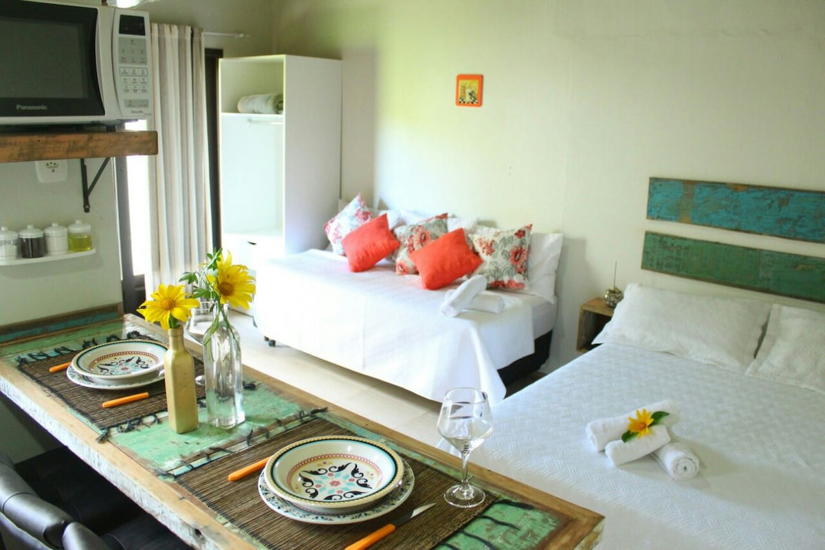 Pousada Vale da Praia - Bangalô 5 Destaques da Acomodação: - Sacada com vista para a natureza - Piscina - Estacionamento - Pet Friendly - Café da Manhã - Frigobar e smart tv no bangalô - Banheiro privativo - Acomoda até 4 pessoas - 300m do famoso Centrinho do Rosa - 15 minutos de caminhada até a praia - Cozinha compartilhada completa com churrasqueira