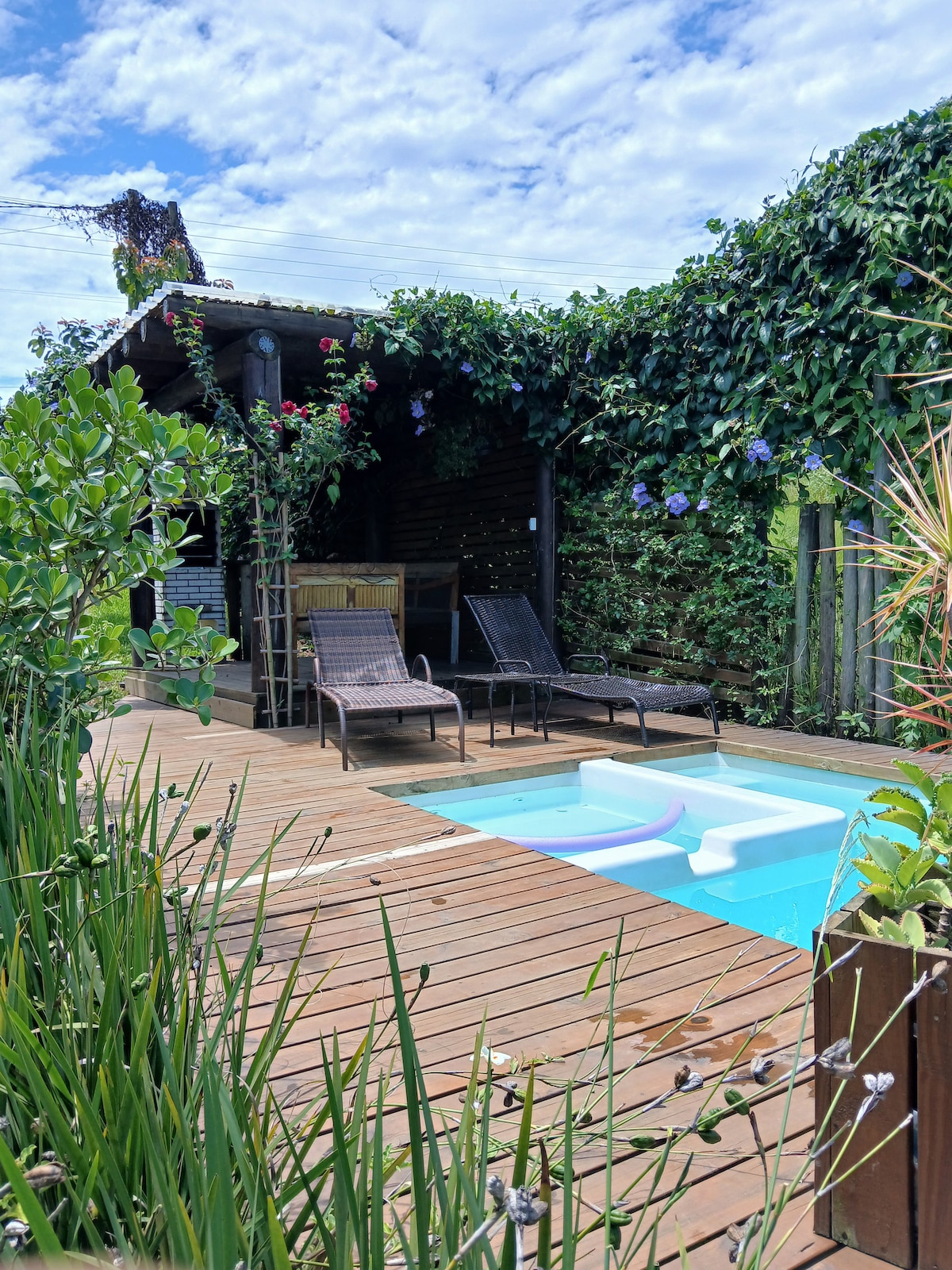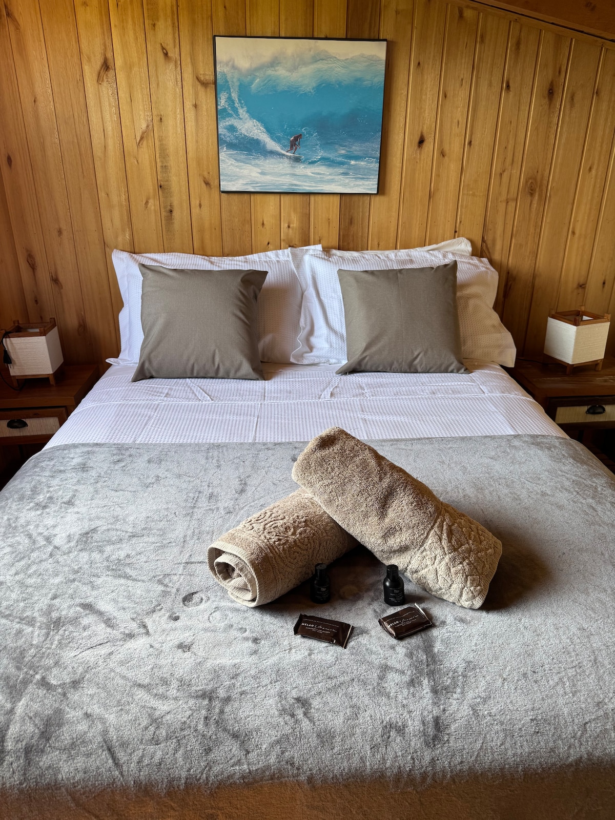 Cabana charmosa na Praia do Rosa A tão só 5 minutos a pé do Centrinho (350mtrs) e 10/15 minutos a pé da praia (800mtrs). Ar condicionado e TV smart, cozinha bem completa, micro-ondas, cafeteira, banheiro privativo, wifi, estac. privativo (sem custo). *Temos diferentes tipos de acomodações, cabanas superiores com vista ao vale, cabanas com vista ao jardim. Consulte a disponibilidade ao reservar. A pousada tem piscina e churrasqueira compartilhada. Moro no local para dicas ou assistência.
