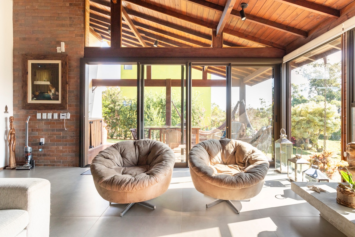 Be connected to nature in a house full of style. A beautiful and tranquil location, perfect for relaxation and recharging your energies. Ibirahill Bajau is inspired in the "sea nomads", an ethnical tribe in the south east Asia that live in stilt houses over the ocean. *All photos displayed in the listing are for private use of the Bajau House. **The place is for those who look for relaxing and enjoying quite moments close to nature. Not parties, speakers or loud music are allowed.