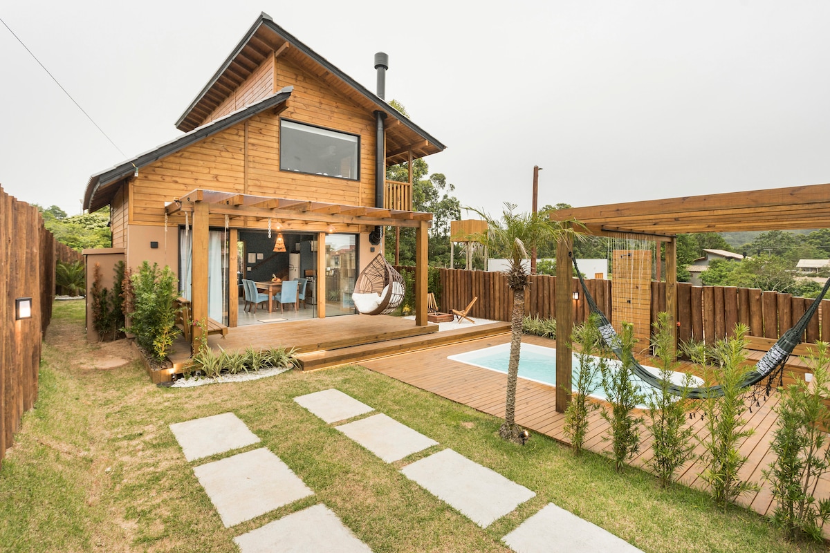 Casa incrível, romântica e confortável, perfeita para viagens de casais. À beira da Lagoa, com muita natureza e privacidade. Vista maravilhosa da Lagoa pois a frente da casa é toda em vidro. Muito próxima das Praias do Luz e Ibiraquera (5 minutos) e da Praia do Rosa (12 minutos). ATENÇÃO: O Loft não possui a segurança exigida por lei para receber bebês, crianças e animais, portanto não são permitidos. Nosso espaço é para não fumantes.