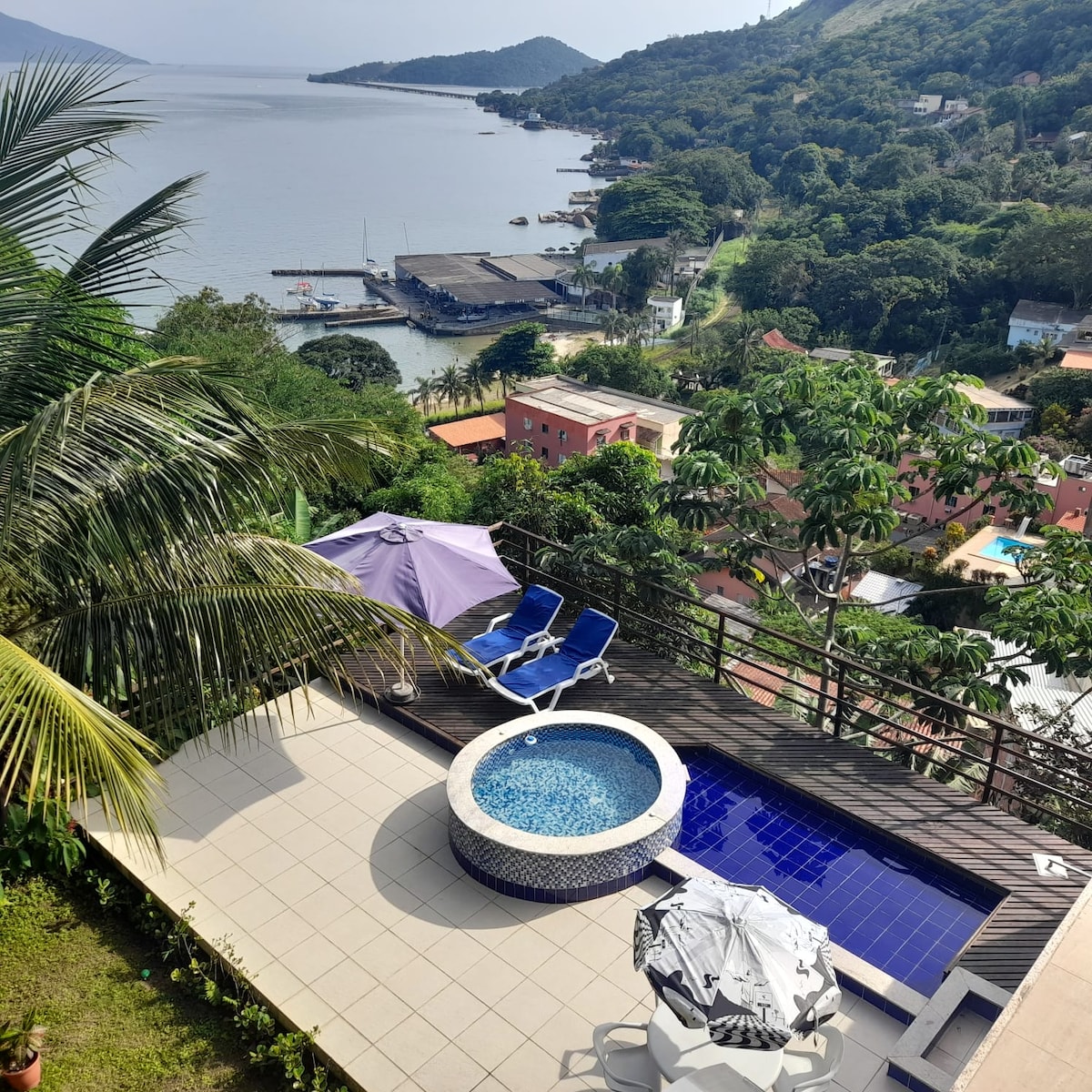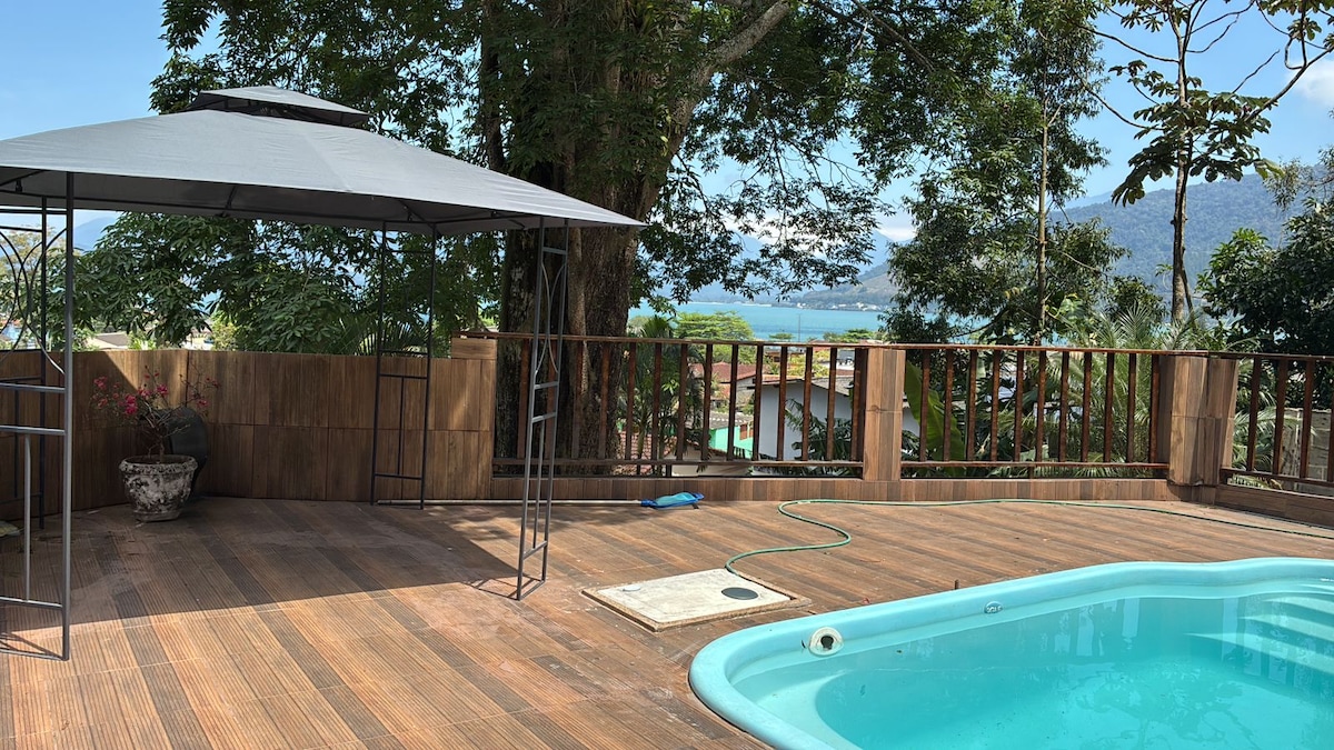 Casa no condomínio Ponta do Cantador, lugar super tranquilo e agradável, com vista para o mar e montanha, acesso à praia por dentro do condomínio. Porteiro 24h Piscina privativa e Wi-Fi Casa com pé direito alto, super charmosa! Caseiro disponível para limpeza do jardim e piscina todos os dias. Possibilidade de locação de lancha. Valor para 6 pessoas podendo adicionar mais 2 ( taxa adicional ) *Aceitamos Pets mediante autorização prévia.