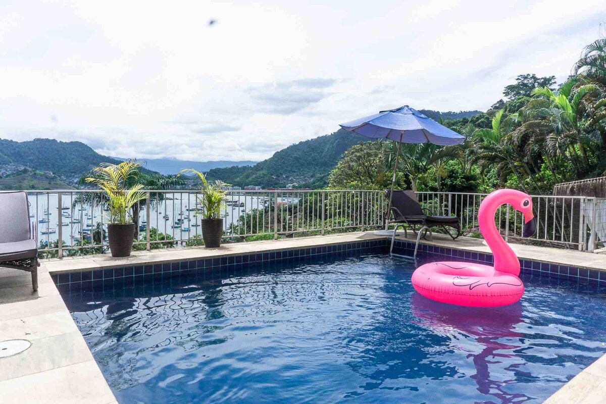 Casa exclusiva de alto padrão no condomínio Portogalo em Angra com vista deslumbrante para Ilha Grande, piscina com borda infinita, área gourmet com churrasqueira, forno de pizza, cervejeira, sinuca. São 5 suítes com ar-condicionado e Smart TV, sala ampla com TV 75”, Wifi/Starlink e cozinha completa. Condomínio seguro. Serviços extras como camareira, cozinheira, lanchas e espaço VIP com telão também disponíveis. ⚠️Importante: Pedimos que leiam a seção de regras antes de concluir a reserva.