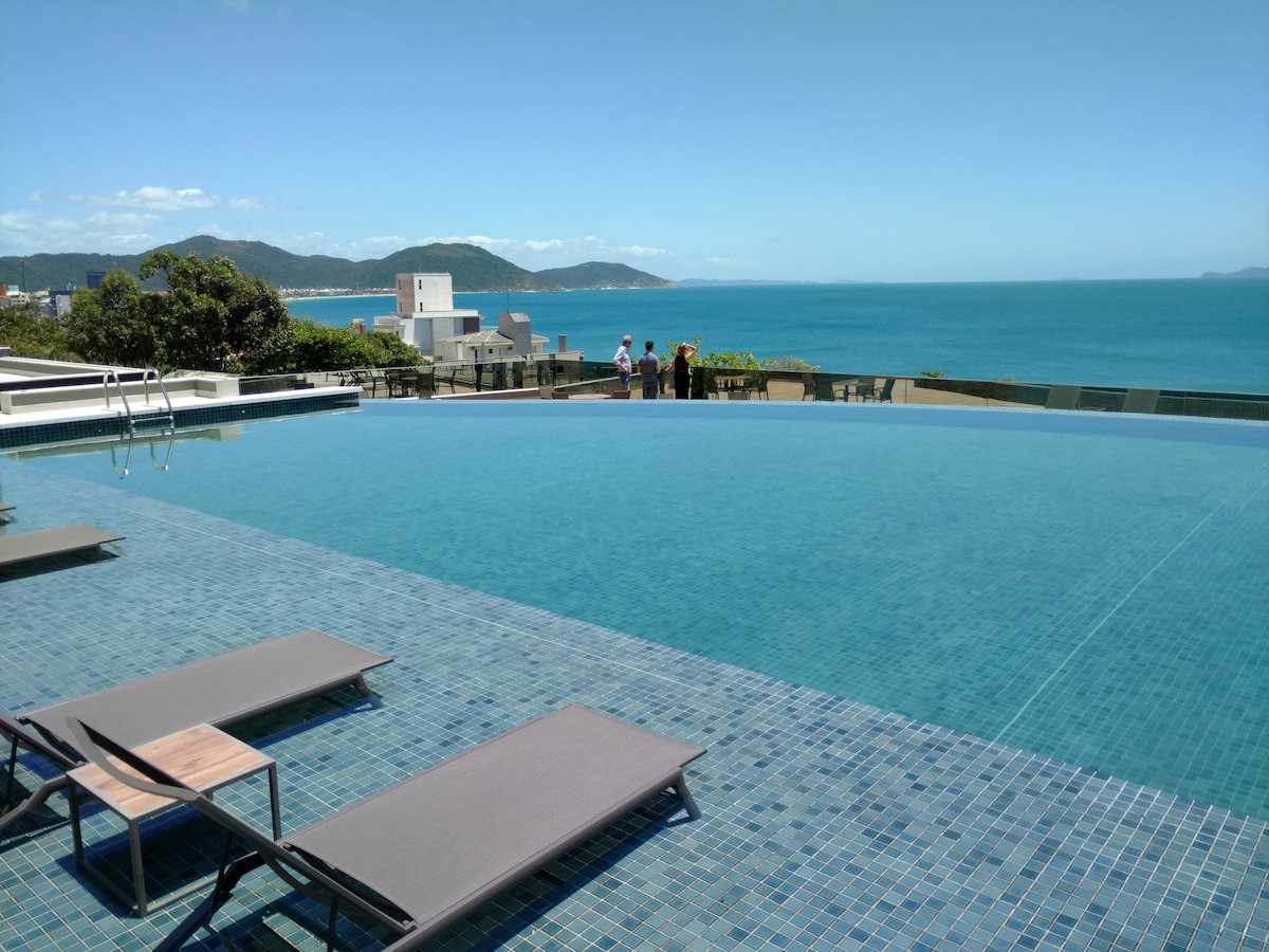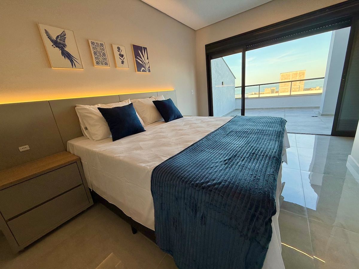 Cobertura EXCLUSIVA com JACUZZI AQUECIDA na sua ampla ÁREA EXTERNA PRIVATIVA, iluminação noturna especial e VISTA LIVRE. Localizada acima das construções vizinhas, garante total privacidade e uma vista deslumbrante para as dunas e a Praia do Santinho. O condomínio fica em frente à Praia dos Ingleses — é só atravessar a rua! Aproveite também a piscina de borda infinita do condomínio com vista para o mar.