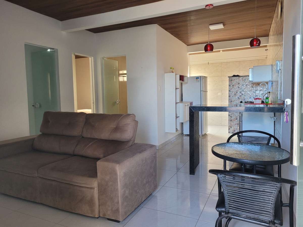 Your dream getaway starts in Ilhéus! This beautiful apartment offers everything you need for an unforgettable stay. The bedroom has a smart TV and air conditioning, the living room invites you to relax with its smart TV, the kitchen is fully equipped for all your needs and the balcony is perfect for relaxing. The condominium amenities include a refreshing swimming pool. Make yourself at home and explore the wonders of the region. Come and be enchanted! Make your reservation today!
