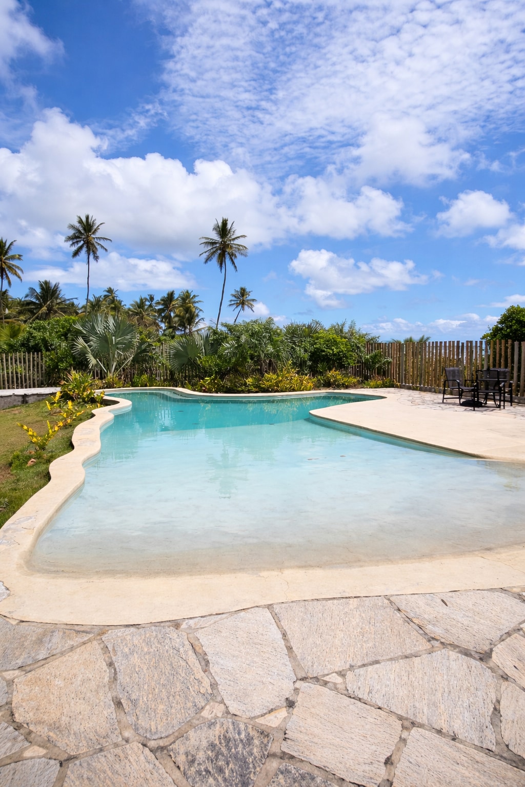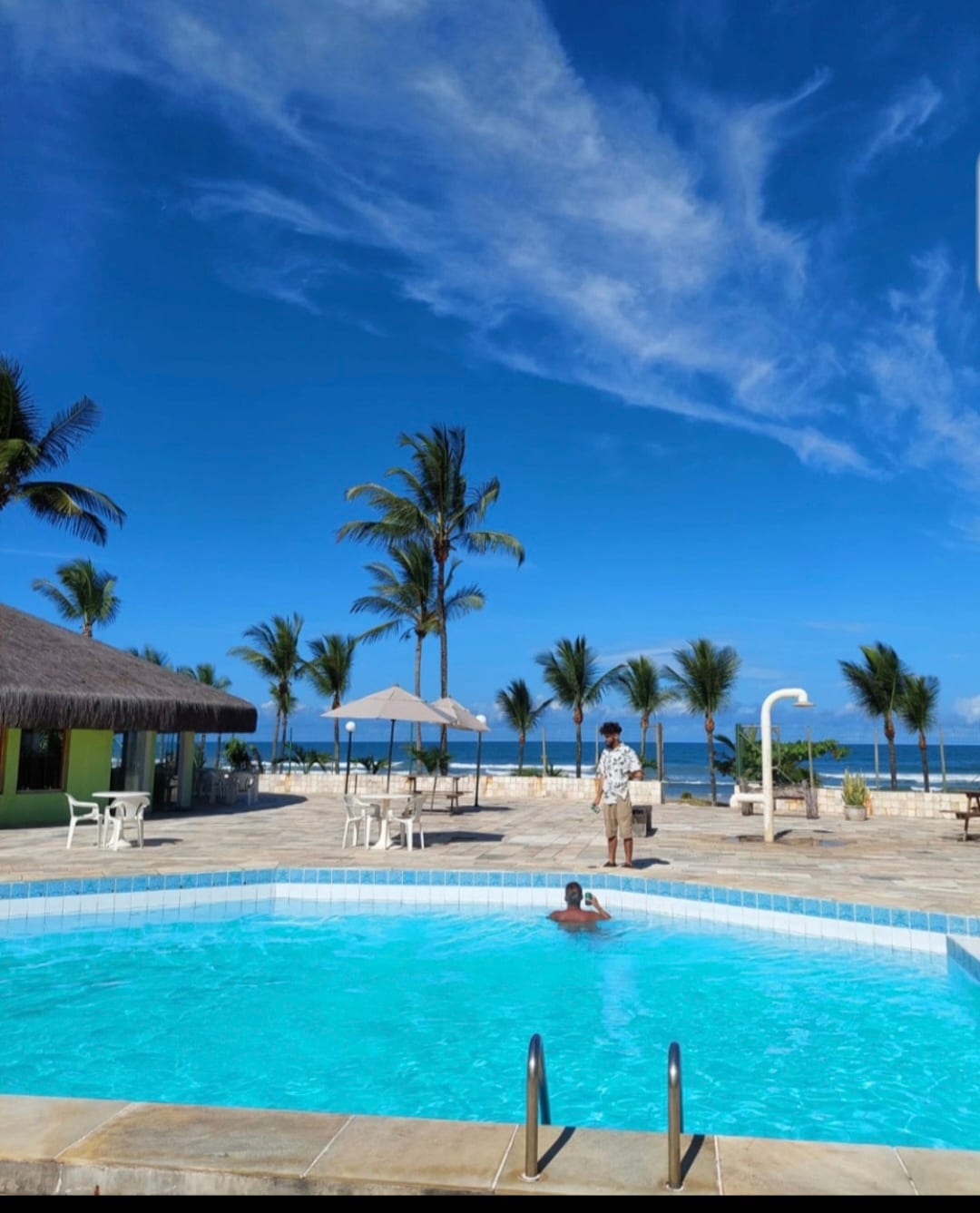 椰子棕榈树下的梦幻泳池,就在海滩上