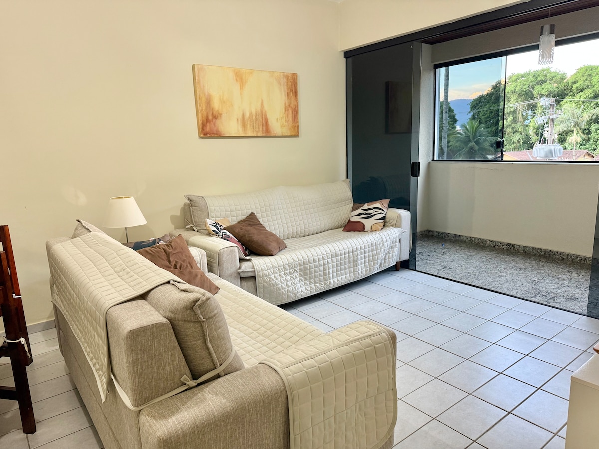 Apartamento aconchegante, com sacada ampla e vista espetacular para o mar! Ideal para relaxar e aproveitar. Localização privilegiada, no centro de Ubatuba, próximo a restaurantes, lojas e bares. Estacionamento gratuito e privativo disponível para 1 carro dentro do condomínio (necessário usar escadas). Acesso Wi-Fi disponível em todas as áreas do apartamento gratuitamente. Animais de estimação não permitidos. Espaço para famílias, não aceita fumantes. Piscina ao ar livre.