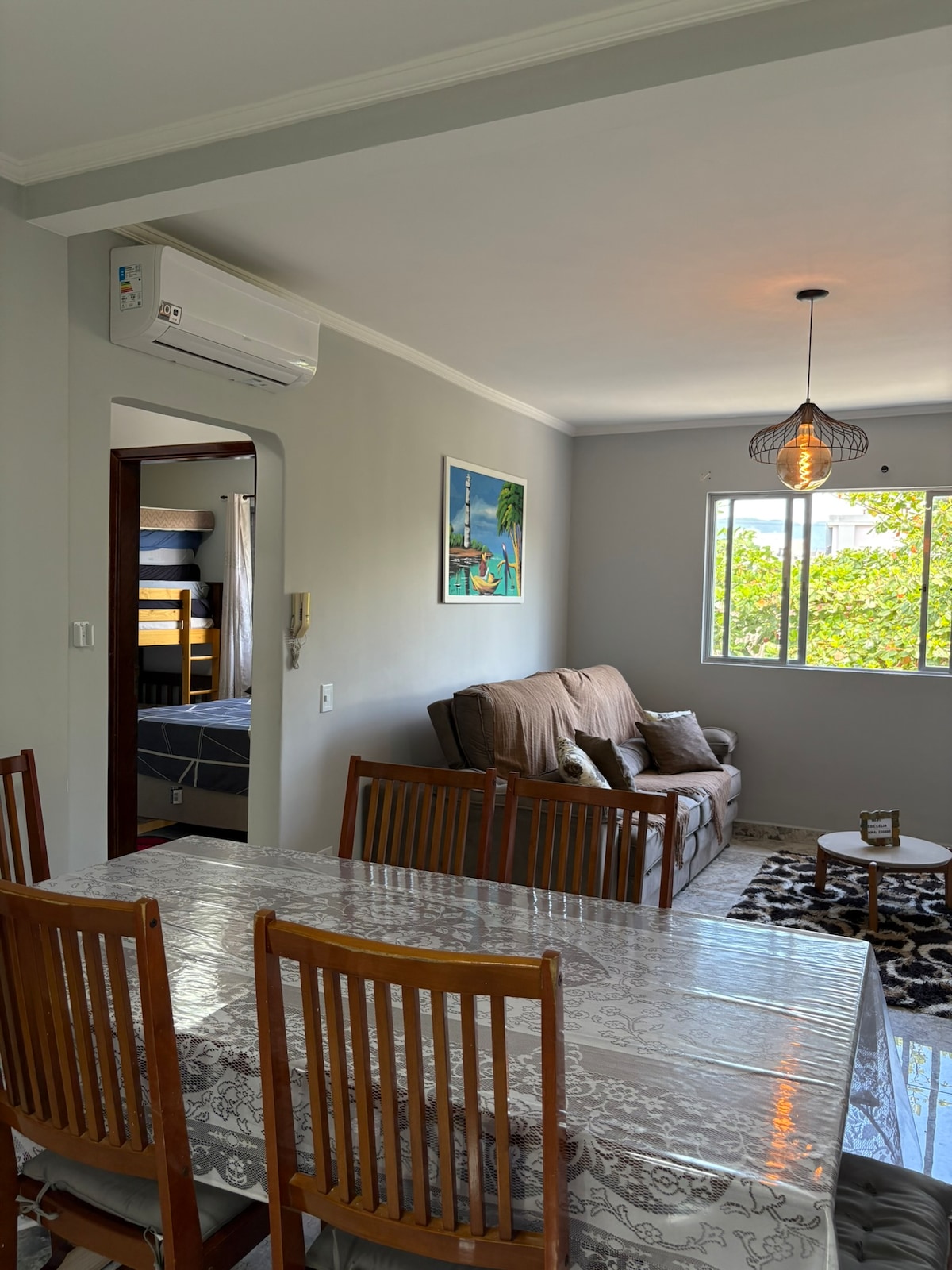 🏖️ Apto aconchegante a poucos metros da praia Apartamento completo, com todos os utensílios para cozinhar, Wi-Fi, ar-condicionado e Smart TV de 43”. Dispõe de cama de casal, sofá-cama e uma vaga de garagem dentro do condomínio, com portão eletrônico. ÓTIMA LOCALIZAÇÃO! A apenas 3 minutos de caminhada da praia, no melhor ponto da Praia Grande — próximo a restaurantes, pizzarias, sorveterias e muito mais. Observação: não fornecemos roupas de cama e banho.