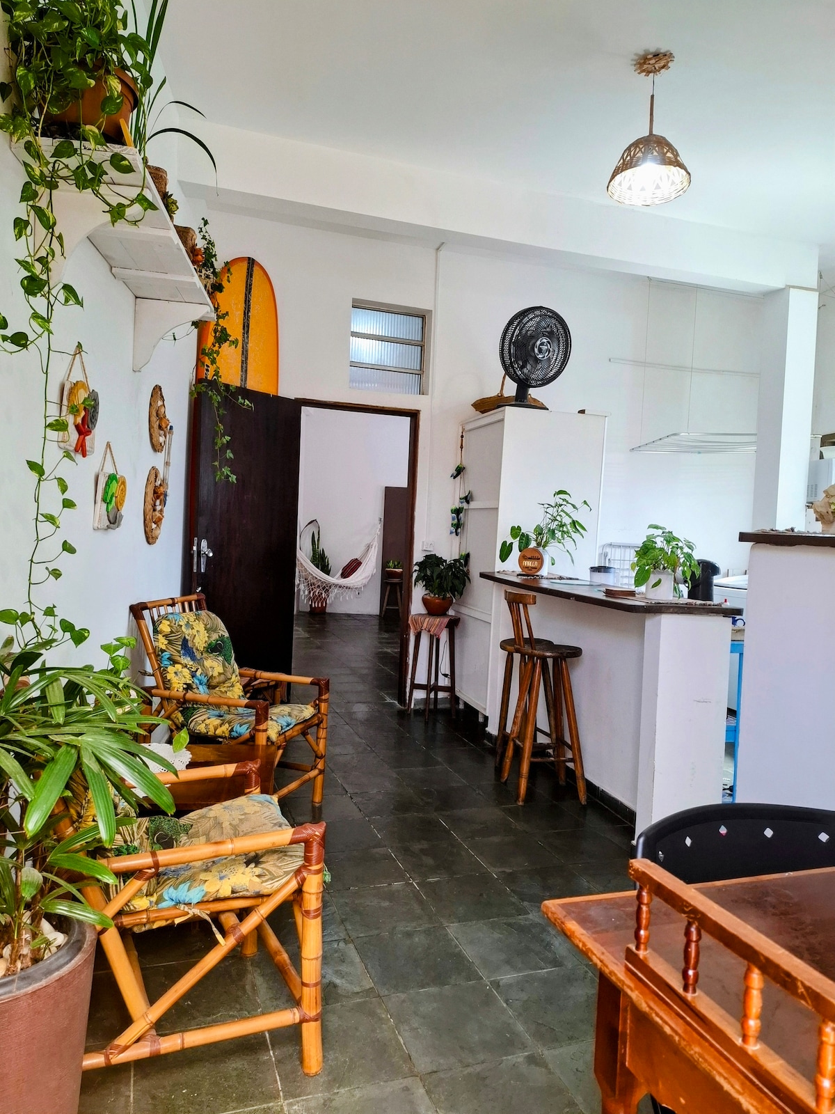Casa rústica na praia Vermelha do Centro, a 3 minutos do mar, em rua tranquila e sem saída. Ensolarada e cercada por jardim tropical, localizada em meio à Mata Atlântica. São 3 quartos, sendo 1 suíte. Sala integrada à cozinha. Cozinha com geladeira, fogão, liquidificador, panelas, assadeiras e demais utensílios necessários para preparar as refeições. Há internet fibra óptica 350mb. Tv smart 43" É necessário levar lençóis, toalhas e demais itens de uso pessoal. Há travesseiros e mantas.