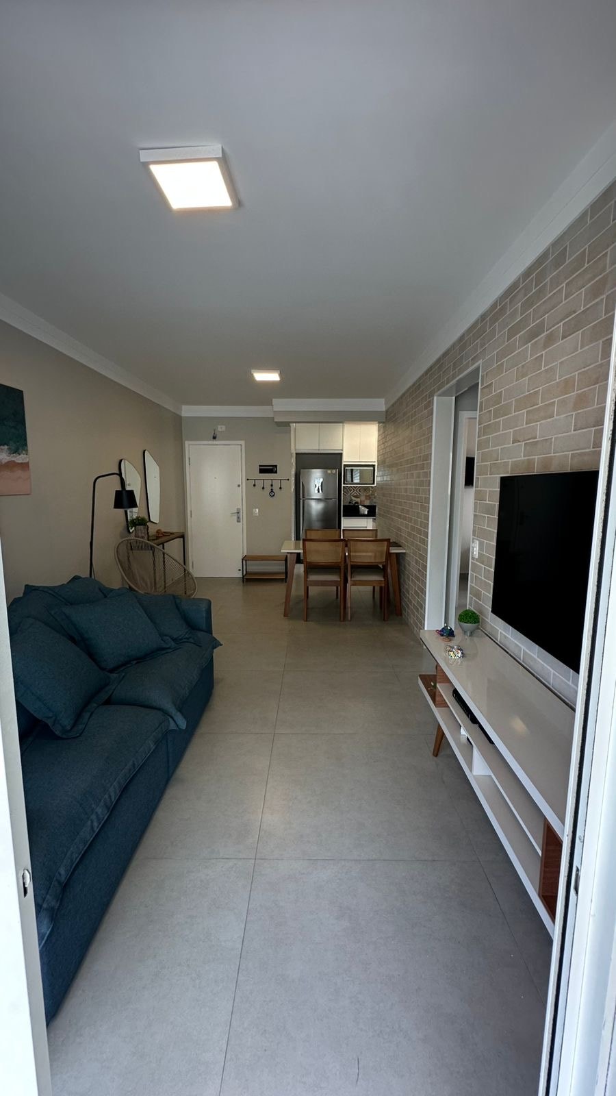 O apartamento é aconchegante e moderno, cozinha integrada com a sala, uma varanda espaçosa com vista para o morro do Forte , Praia do Tombo e Guaiuba, alem de proporcionar um Por do Sol maravilhoso !!!! Possui 1 quarto privativo e na sala uma cama de casal embutida que transforma-se em outro quarto (fechamento com cortinas)