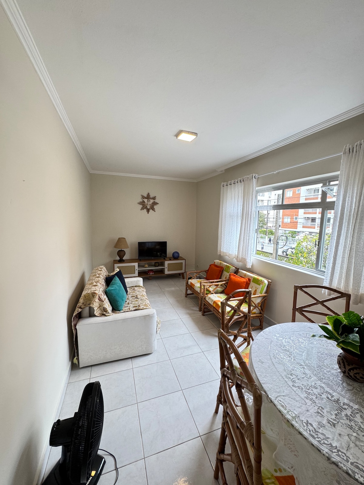 Praia do Tombo - Guarujá, SP Apartamento no bairro do Tombo, 200m à praia, 5 min de carro à praia de Guaíuba. 1 dormitório, sala, cozinha, banheiro social, ampla sacada com vista ao mar, ar condicionado (quarto), interfone, sala de estar com TV, sofá e ventilador de teto. Cozinha equipada com geladeira, microondas, liquidificador, sanduicheira, fogão e acessórios, 1 vaga de garagem. Não fornecemos roupa de cama e banho!