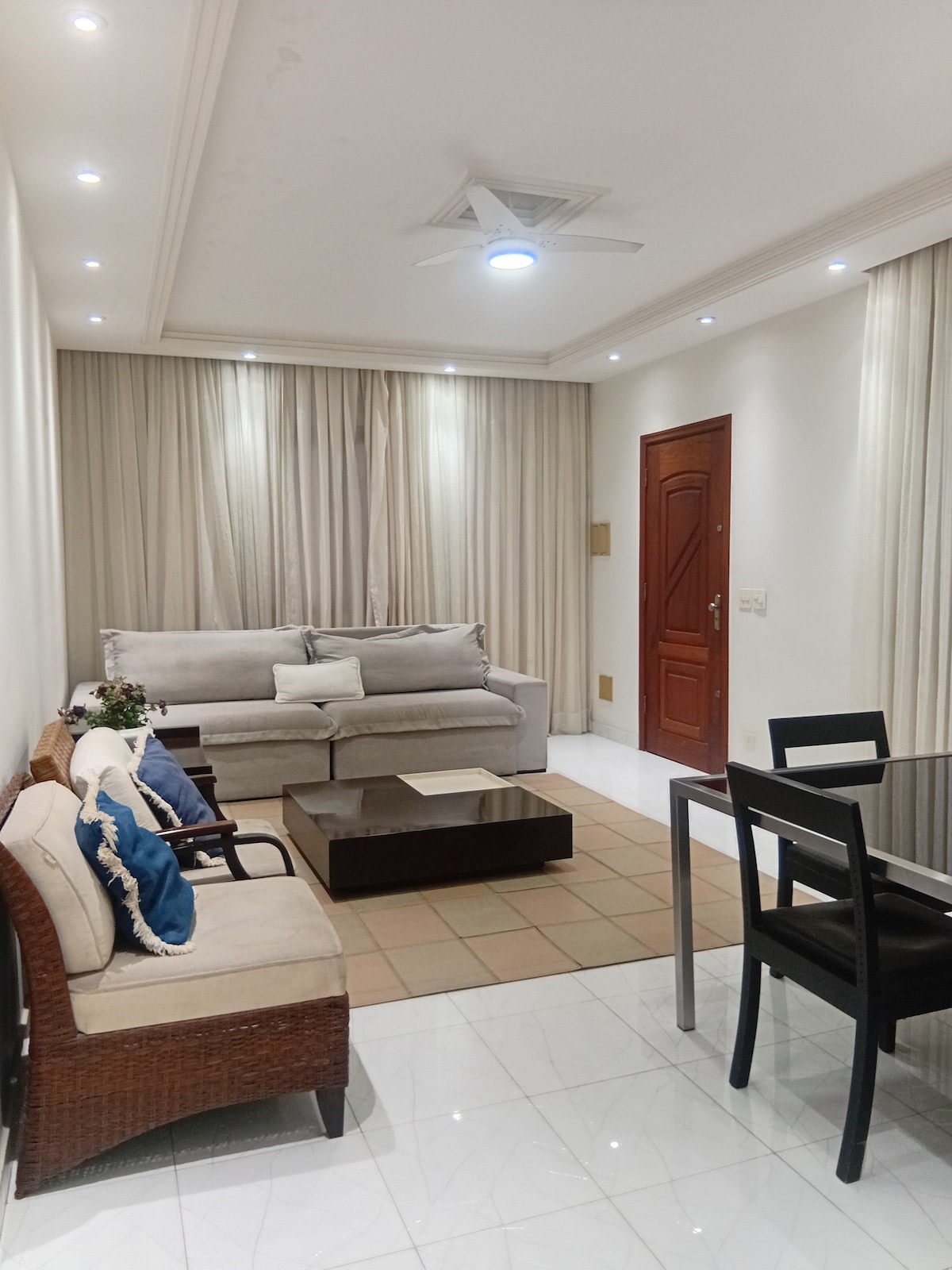 Delightful family condominium of 8 units at the end of Praia da Enseada, one of the safest places in Guarujá. Our unit has 3 bedrooms, one of which is a double suite, living room, terrace, kitchen and service area. Apartment on the ground floor with excellent accessibility, without steps and with safety bars in the bathrooms. Private garage in front of the terrace with a pet friendly garden. Our garden facing the sea has the most beautiful sunset in all of Guarujá!