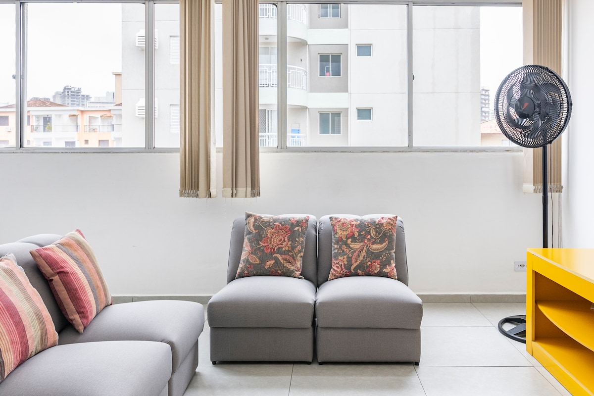 Apartamento Único e novo. Praia das Astúrias no Guarujá, lugar tranquilo à 1 minuto da praia com águas calmas e transparente... a 1 minuto do morro das galhetas e o mercado de peixes, à 2 minutos da feirinha da Astúrias, padaria Seu Vidal, Burgman... muito bem localizado. Fica no 1⁰ andar ( tem 1 lance de escadas ), prédio sem elevador aceitamos Pet e garagem com vagas compartilhadas com abertura manual. 1 quarto com cama queen 1 bicama com colchões de solteiro na sala.
