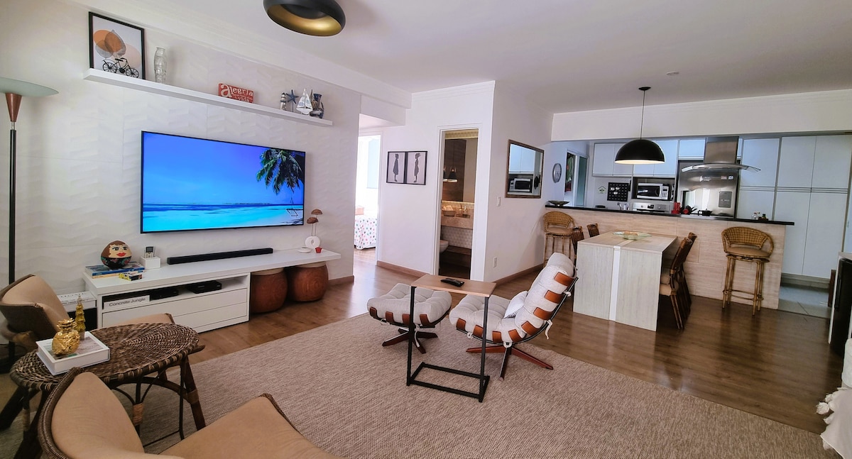 Você vai estar perto de tudo ao ficar neste lugar bem localizado. A uma quadra da praia! Muitas opções de alimentação ao redor! Apartamento novo! Flat com serviço de praia (cadeiras e guarda sol) e serviço de limpeza diária no apartamento. TV a cabo, internet (wi-fi). Cozinha equipada e varanda gourmet com churrasqueira. 1 suíte com cama casal + bicama e TV a cabo. 1 quarto com 2 camas de solteiro + bicama *** Não temos disponível roupas de cama, travesseiros, toalhas e cobertas ***
