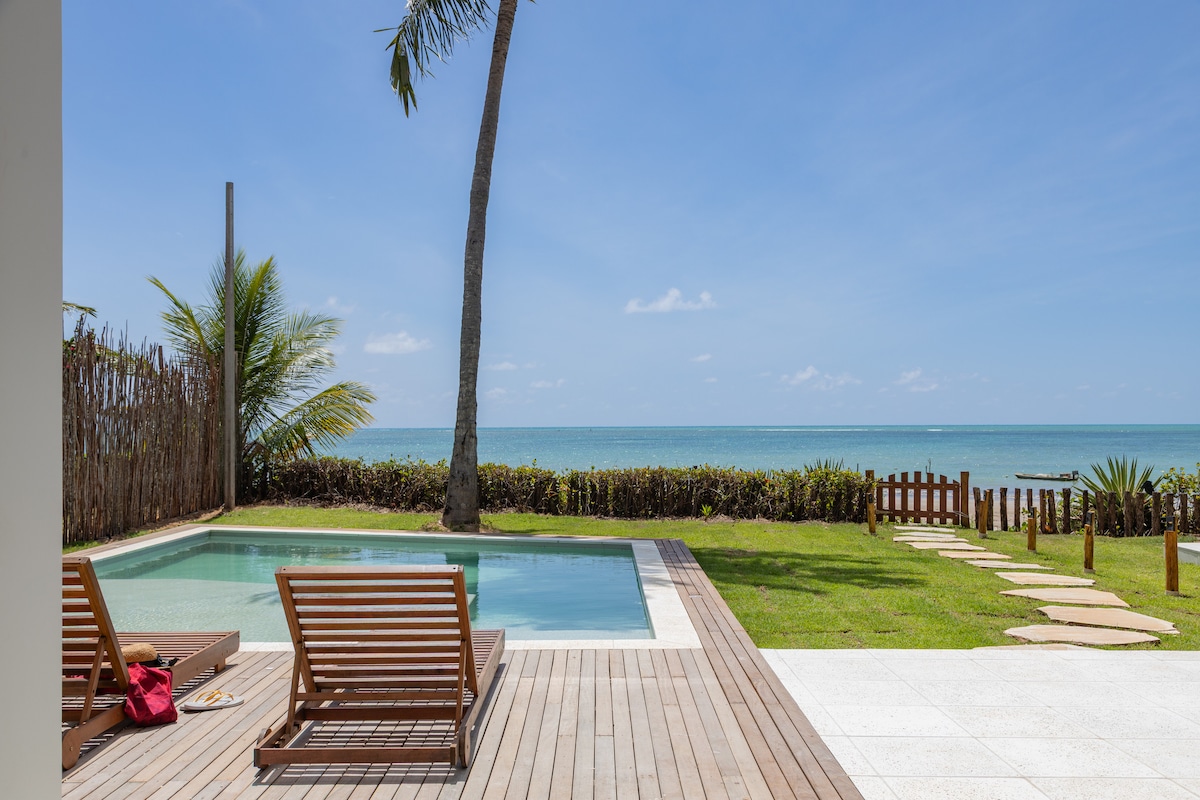 House in a beachfront condominium on stunning Marceneiro Beach, part of the Ecological Route of Miracles/AL. It has 2 suites and 1 bedroom with an accessible bathroom. Air conditioning in all rooms. Fully equipped for a comfortable stay: complete kitchen, linens, Smart TVs, fiber internet, private pool, and 2 parking spaces. The condominium offers a playground, beach access, gym, 24h security, laundry, and a beachfront common area.