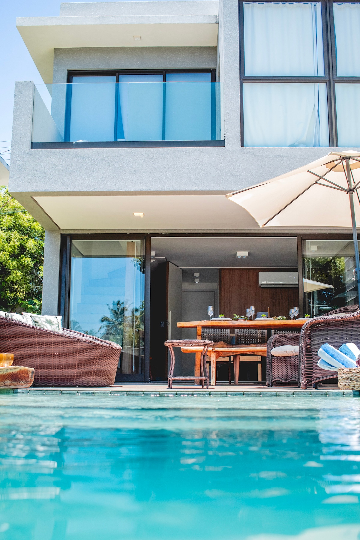 Inspire-se com família e amigos neste lugar cheio de estilo e design! Nossa casa é equipada e completa para receber seus convidados e transformar sua estadia numa experiência inesquecível! Nossa piscina quentinha, possui área rasa perfeita para crianças e iluminação noturna. A 200 metros da paradisíaca praia de Tatuamunha e também do rio, lindo cenário do Peixe Boi - café da manhã delicioso, servido todos os dias, - arrumação diariamente