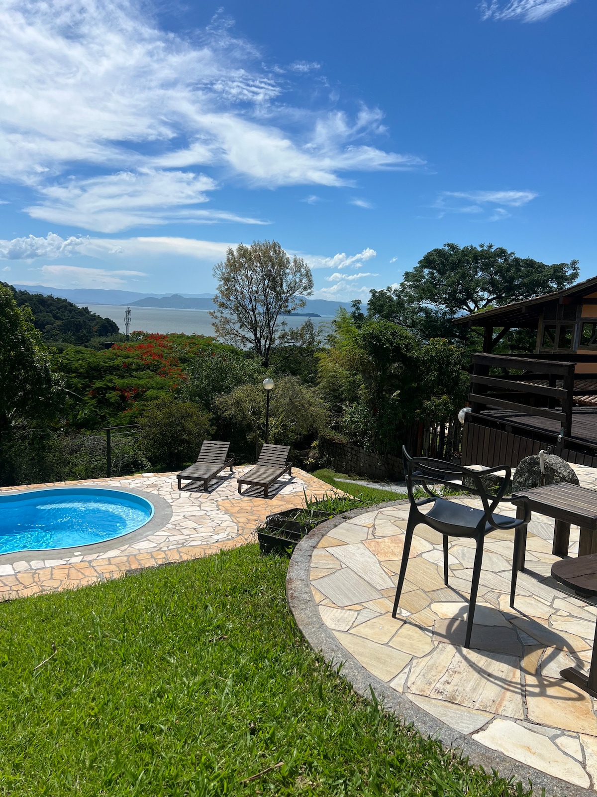 The most private+scenic view on quiet south Florianopolis, new in the market and ready for reservations. Large house with gorgeous view to beach and swimming pool. Nice extensive deck, 4 bedrooms (two on top and two below, all with nice sea views), comfortable and stunning romantic views. 3 to 4 internal parking spaces. Our place is in front of the beach, perfect for couples, solo adventurers, business travellers, families (with kids), and big groups.