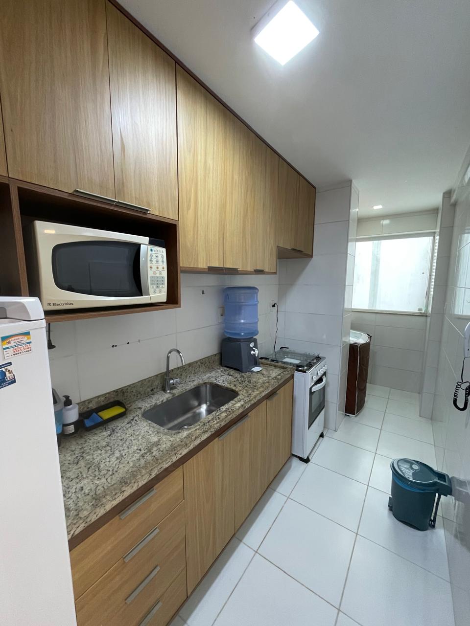 Great apartment with 50sqm, a few steps to the beach. Cozy 1 bedroom with double bed, bedside table, chest of drawers and clothes rack, living and dining room with table and double sofa bed, kitchen equipped with refrigerator, stove and accessories for the preparation of meals, service area and a wide balcony. Free garage and Wi-Fi. View to the sea. The condominium has 24 hour concierge, terrace with swimming pool, gourmet area, barbecue area, gym and a workspace in the lobby.