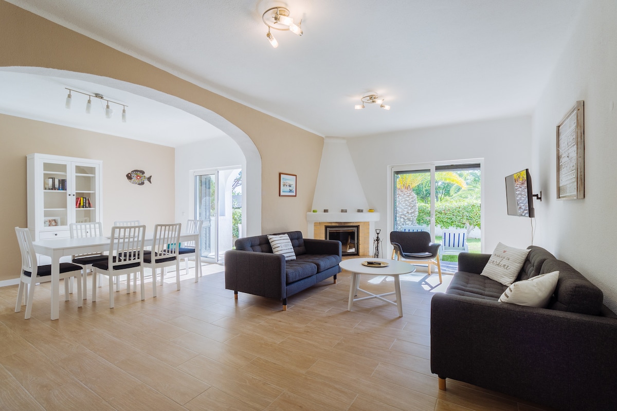 Beachy, artsy vibe near coastal town Armação de Pera. 10/15 min. walk to beaches, cliff paths, town, restaurants, supermarket. Outstanding terrace ocean view, BBQ. Fireplace. A/C in living room and bedrooms. Fully equipped kitchen. Free street parking. Max 4 people. Primary bedroom: queen-size bed. 2nd bedroom: 1 or 2 twin beds. Kids: 5 years +. Nightly rate is base rate for 2 guests; there is an added rate p/person p/night, including kids. For stays of 10+nights, there are added cleaning fees.