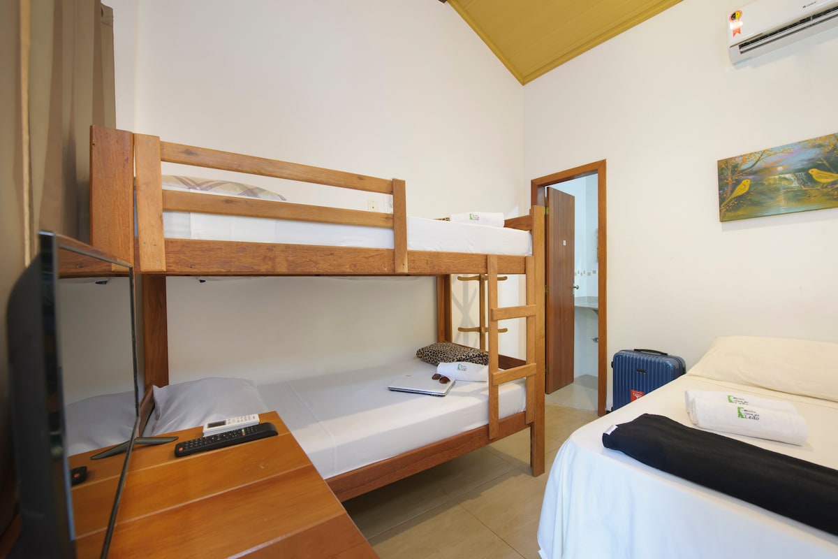 Nossos quartos contam com ar condicionado, frigobar, banheiro privativo, roupas de cama e toalhas de banho.