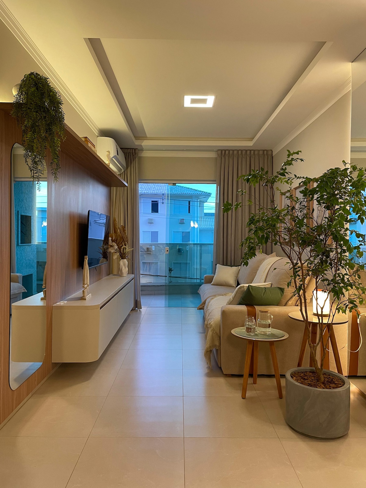 This sophisticated and spacious apartment can comfortably accommodate up to 2 people. Located near the beach and the center of Jurerê, it is perfect for those looking to explore the neighborhood with guaranteed convenience and mobility. Ideal for beach lovers who want to explore other charming spots in the region, after a day out, you can relax and have a barbecue with friends on the balcony, enjoying the air-conditioned spaces.
