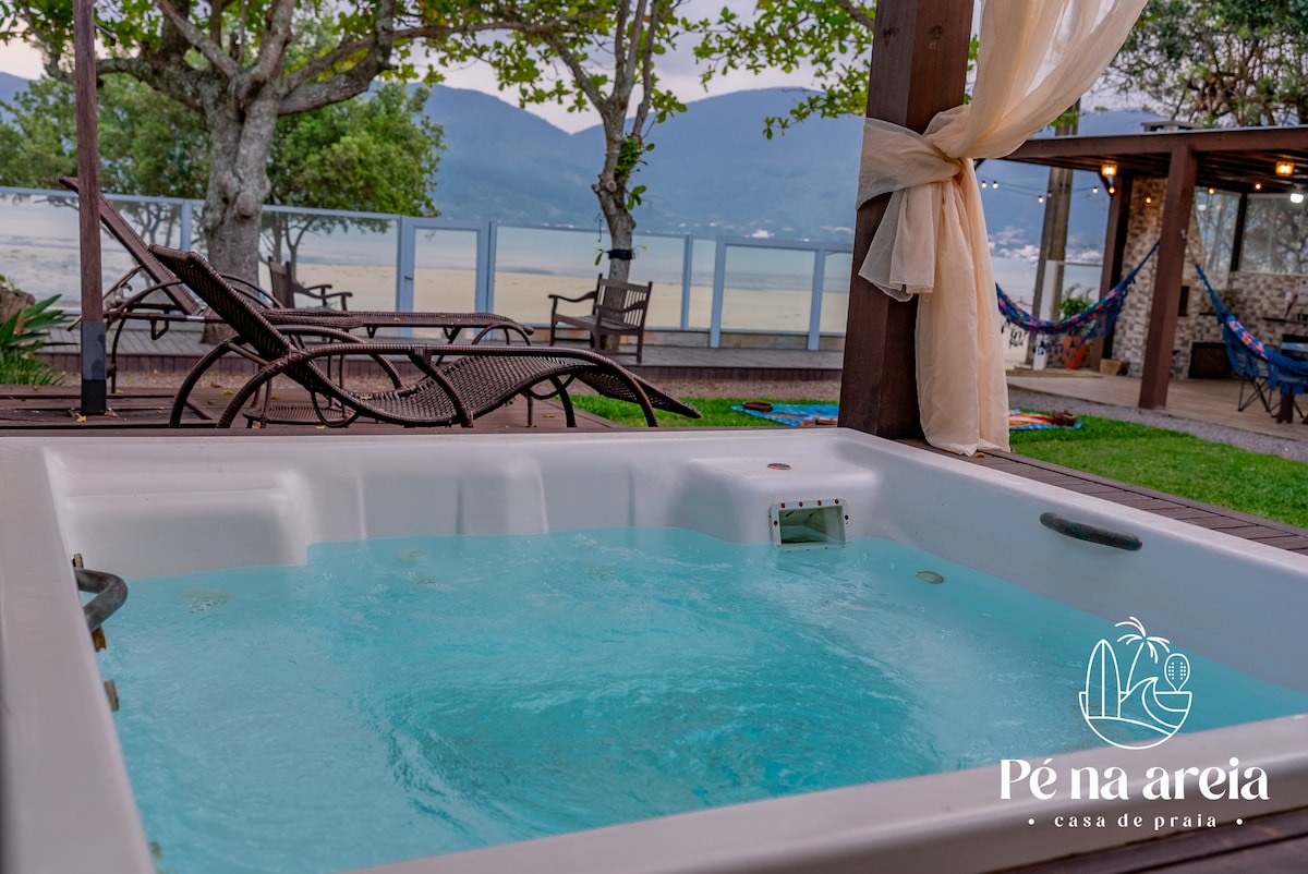 Casa Frente Mar, na Praia da Fazenda da Armação, Governador Celso Ramos, Rua Principal do Bairro, com acesso da Casa Privativo à praia, Próx a Panificadora, Mercado. Residência Familiar, organizada e ótima estrutura, Banheira de Hidromassagem na Suíte Master, além de 2 outras suítes super equipadas. Todos os quartos possuem Ar Condicionado, TV à cabo para melhor conforto. TV à cabo, na sala, SALA DE JOGOS FRENTE MAR, cozinha ampla e equipada, churrasqueira vista mar.