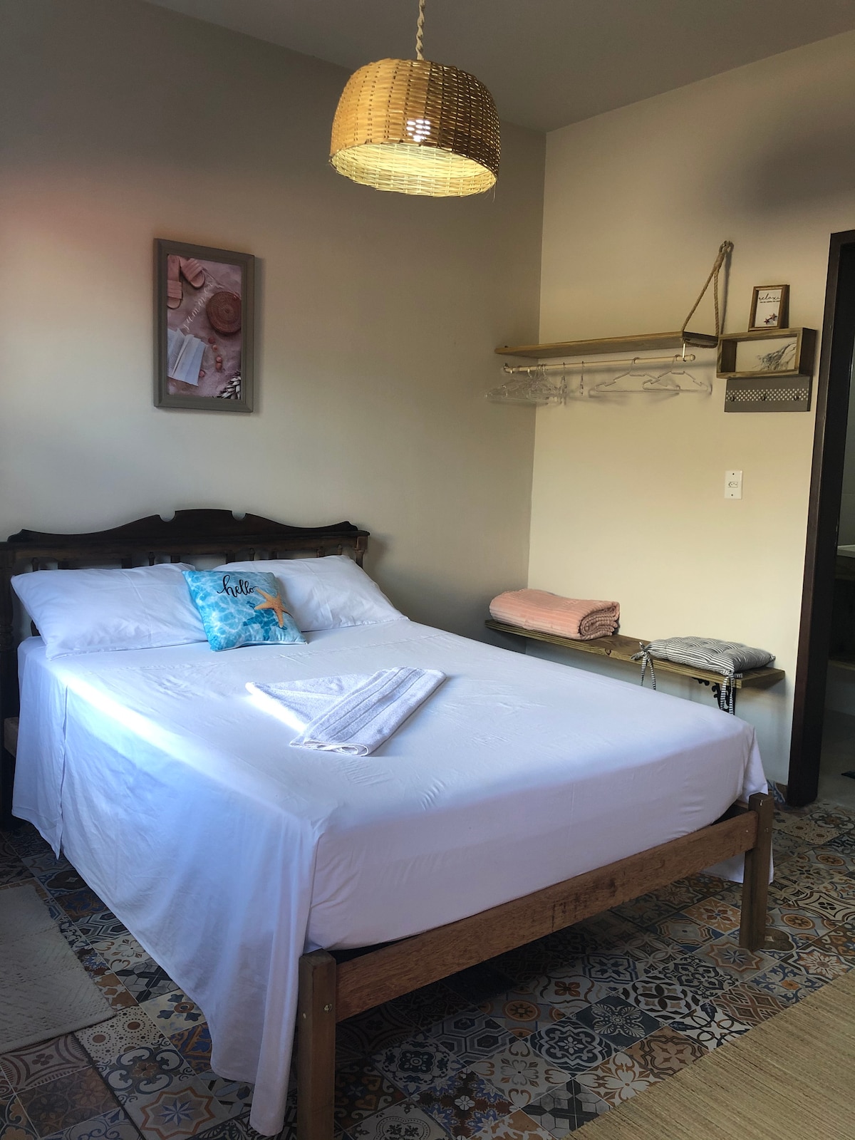 ** O Ap. 01 (suíte master) da pousada poussúi seu próprio banheiro e ele não é compartilhado. Esta suíte anunciada acomoda confortavelmente ate 3 pessoas, se precisar disponibilizamos colchão e roupa de cama extra. Suíte completa com tv, frigobar, ar condicionado, guarda roupa, banheira hidro, sacada. Os hóspedes da suíte tem acesso a áreas sociais da pousada (ampla cozinha, sala estar, jardim, piscina e churrasqueira). - Pousada a 3 min. da praia (Andando). 🏝️☀️ @pousadanorthadventure