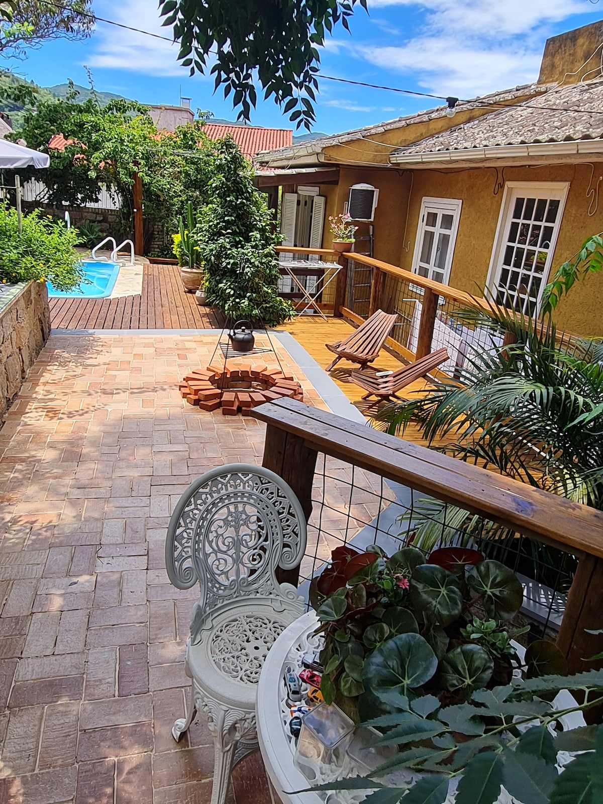 Observatório natural no alto da montanha com uma arquitetura em simbiose com a natureza. Visual deslumbrante para a Lagoa e o Mar, com nascer do sol e da lua. Fogueira para ver as estrelas. Conforto com requinte e privacidade. Rodeada pela mata atlântica, águas da cachoeira, piscina natural com água da nascente. Acesso somente via barco (Lindo trajeto pelas águas da Lagoa-ca.15 min.) ou via trilha. Check in presencial. Um paraíso espera por você!