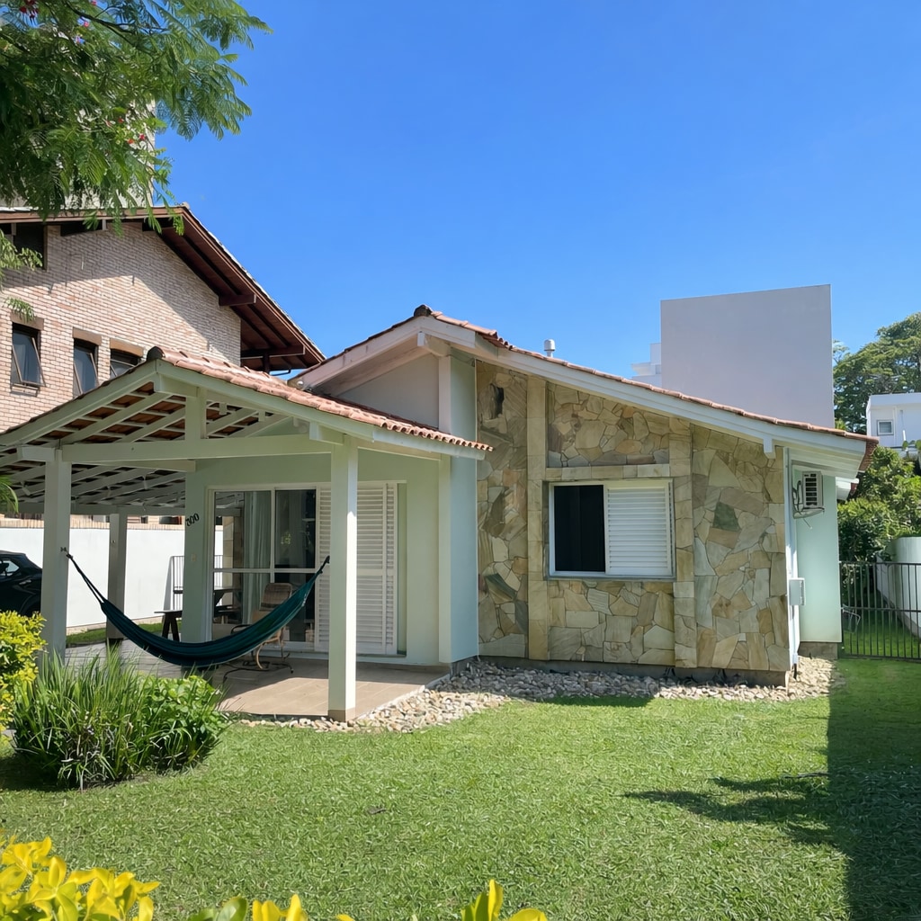 Descubra o equilíbrio perfeito entre conforto e praticidade nesta encantadora casa de 2 quartos e 2 banheiros, ideal para momentos de lazer em Jurerê Internacional! Completamente equipada, com tudo o que você precisa. Na área externa, uma churrasqueira privativa convida para momentos agradáveis ao ar livre. Ótima localização: situada em uma rua calma, a apenas 400 metros do Open Shopping e de frente para o clube poliesportivo JUSC, onde você encontra diversas atividades para todas as idades.