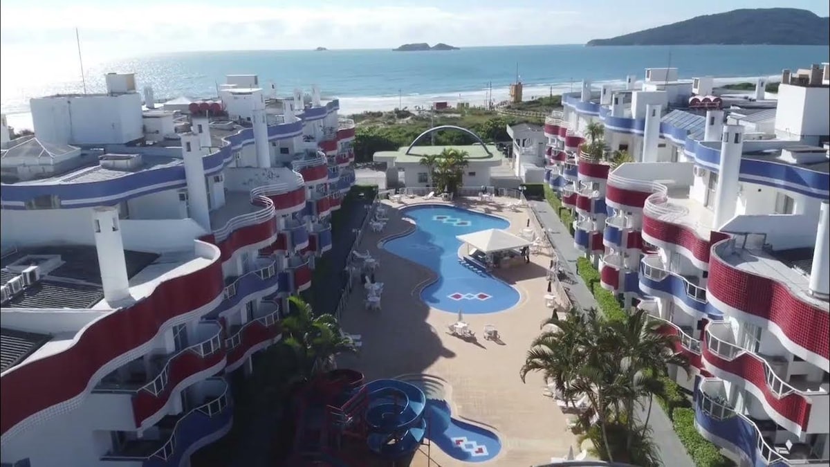 Relaxar e curtir em um Resort 5 estrelas em Jurerê Internacional, acordar, ir na sacada, olhar pra praia e pra piscina, e escolher onde prefere ir para aproveitar o dia. E a noite curtir os bares e restaurantes a poucos metros. Esse Resort, ao lado do mar, conta com recepção 24h, serviços de hotel, roupas de cama e banho, amenidades (shampoo, etc), piscinas externas e internas (aquecidas), sala se jogos, recreação infantil, playground, academia e praia a poucos metros.Você vai se encantar!