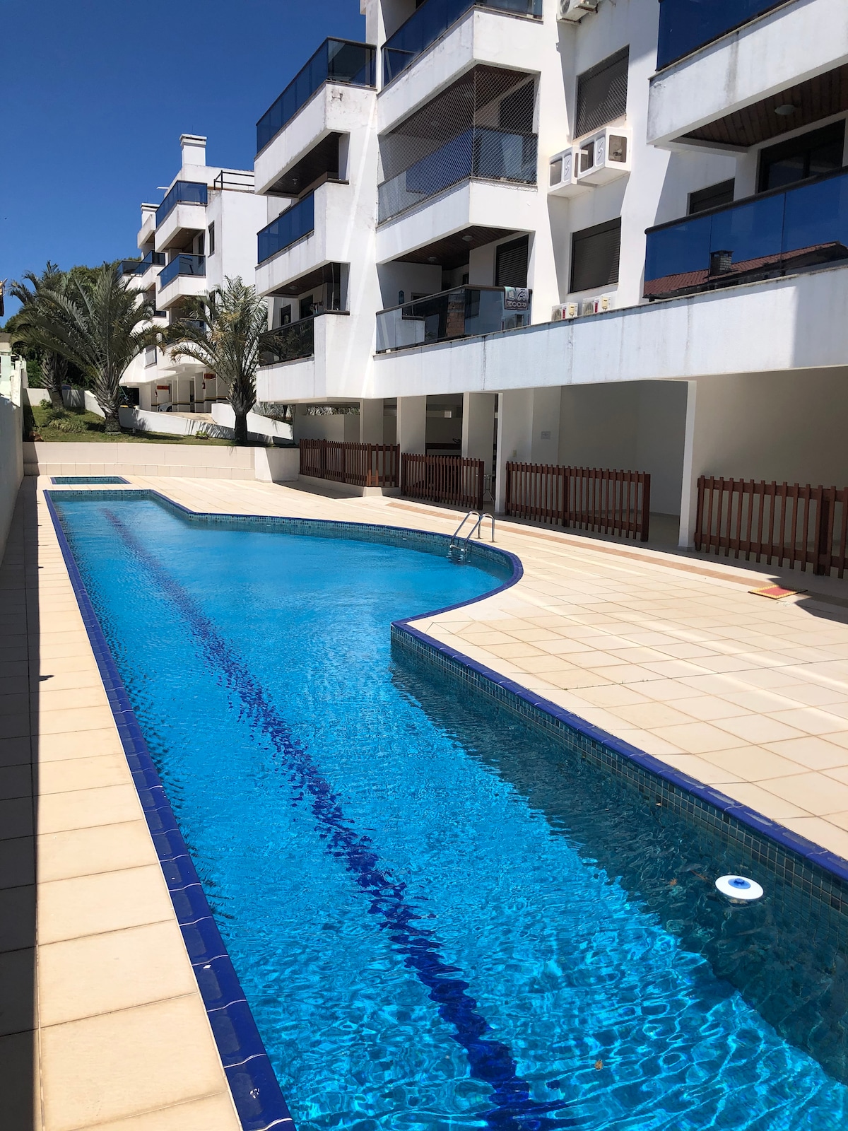 Apartamento completo com 2 quartos, 2 banheiros, 2 vagas de garagem, ar-condicionado em todos os cômodos, Internet 300mbps e sacada com vista para o mar e churrasqueira a carvão. Condomínio Porto das Águas, poucos passos do mar com Portaria 24h e piscina na melhor localização da Praia dos Ingleses. Tenha uma experiência inesquecível de frente para o Mar com dicas locais sobre restaurantes, e passeios (trilhas, travessias de natação/caiaque/standup paddle, aluguel de lancha, cavalgada, etc.).