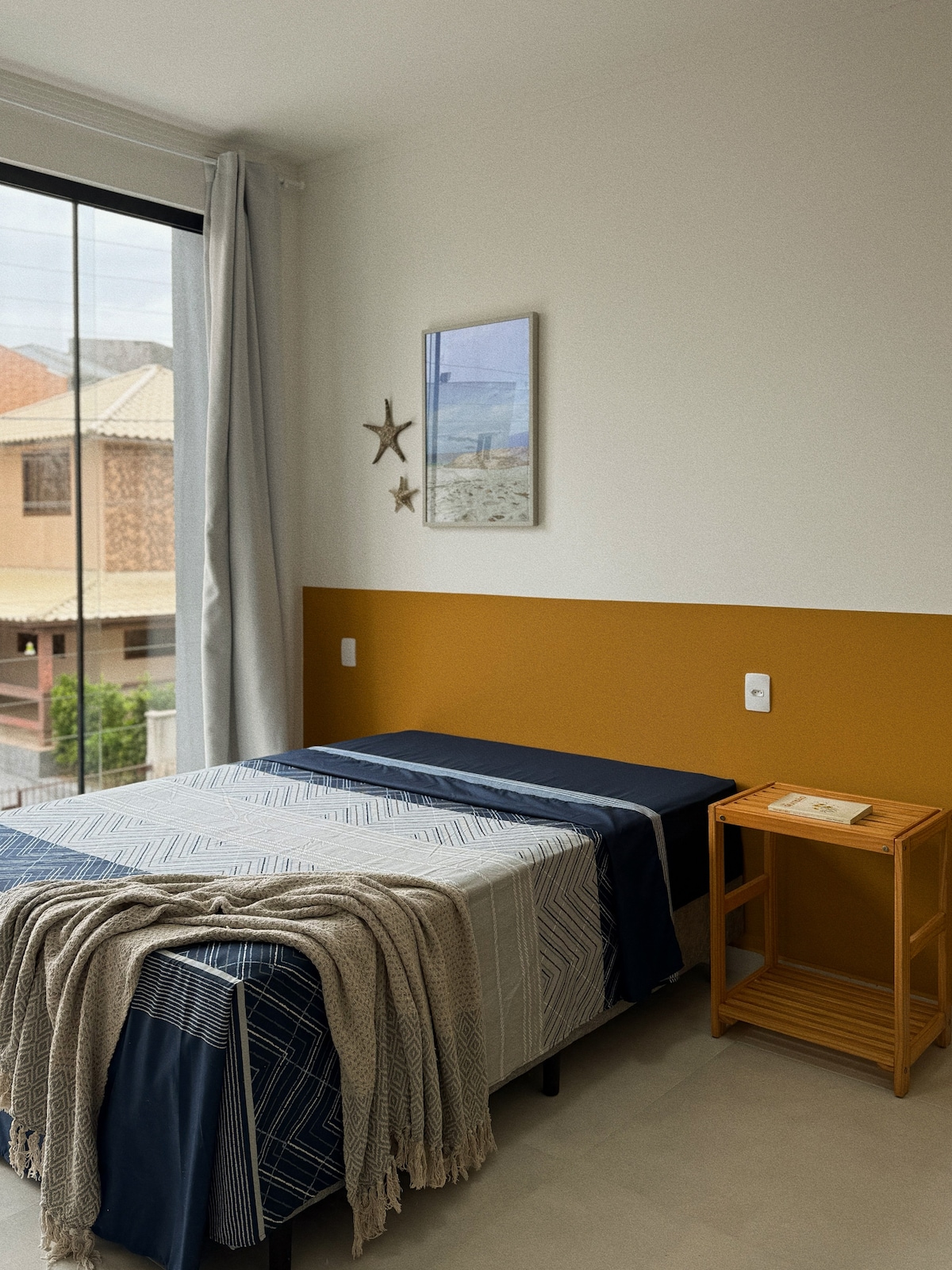 Ideal para família que pretende ficar a beira-mar. Prédio recém construído, a menos de 5 min do centrinho dos Ingleses. Todos os cômodos tem vista para o mar. Dois quartos c/ ar condicionado. Suíte com sacada para acompanhar o nascer do sol, literalmente dentro do mar. No outro quarto temos uma cama de casal. Na sala há um sofá cama. Cozinha é completa, inclusive com purificador de água. Acomoda até 6 pessoas, cobramos taxa extra a partir de 4 pessoas. Garagem 1 carro de pequeno porte.