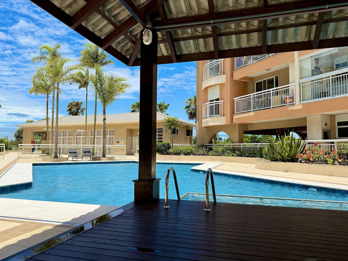 Lindo apartamento, mobilhado, no melhor condomínio com Piscina do Sul do Pais - Marine Home Resort 1 quarto com suite com 1 cama de casal e 1 cama de solteiro, 1 lavabo, cozinha, sala dois ambientes, área de serviço, sacada com churrasqueira. Na sala há 1 sofá-cama super confortável e um colchão inflável Ambientes com AR CONDICIONADO. WIFI, SMART TV com NETFLIX nas 2 TVS (IPTV) Garagem coberta para 1 carro Condomínio a 100m da praia da Cachoeira. Possui Minimercado no térreo