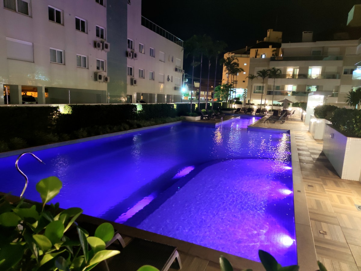 É um apartamento muito bem mobiliado, localizado, no bloco C , no Residencial Espelho das Águas, em frente à Praia dos Ingleses. Tem elevador panorâmico para acesso à praia, a dois minutos de caminhada. Fica próximo às dunas do Santinho). Possui um mercado dentro do condomínio, ficando também próximo a outros mercados e restaurantes. Tem piscina com borda infinita, deck seco e molhado, piscina aquecida coberta e piscina infantil. Amplo mirante para tomar sol e belíssima vista para o mar.