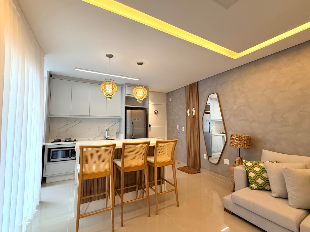 Maravilhoso apartamento entre o mar e a natureza, 02 quartos com persianas elétricas e ar condicionado, 02 banheiros, Tv cinema 60” 4k com Netflix, Hbomax abertos, Xbox One, Wifi, tv em todos quartos, churrasqueira na sacada, moveis planejados em todos os ambientes, 02 vagas de garagem coberta, cadeiras de praia e guarda sol. Piscina adulto e infantil com prainha e raia semi olímpica, quadra poliesportivas, academia, sala de jogos com sinuca e brinquedoteca. Apartamento para receber sua família