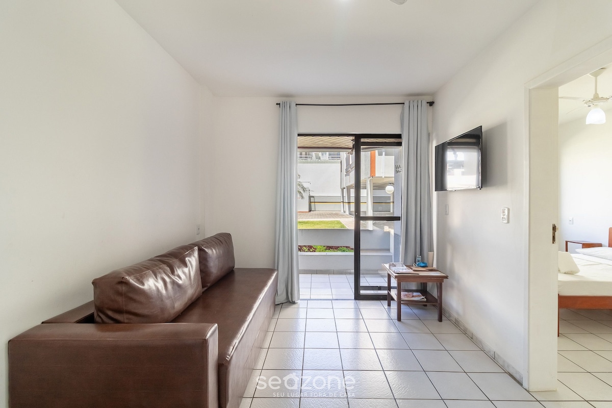 Apartamento beira mar nos Ingleses, área nobre, com mercados, farmácias e restaurantes, próximo de tudo. Uma das melhores praias de Floripa e em um condomínio maravilhoso, com piscina adulto e infantil, quadras para práticas de esportes e parquinho infantil. Ambiente tranquilo, com estacionamento privativo, com portaria 24 horas. *Oferecemos roupas de cama, toalhas de banho, cadeiras de praia, guarda sol e caixa térmica. *Precisa subir escadas e há horário de silêncio após 22h00.