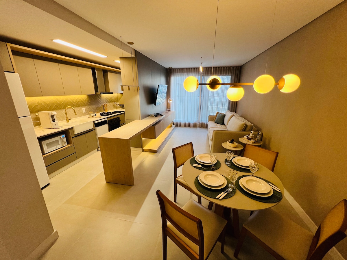 ✨ Your luxury getaway in Jurerê Internacional is ready to welcome you! This exclusive apartment, featuring brand-new sophisticated décor, offers comfort and elegance in one of Florianópolis’ most privileged locations. Stay in the heart of the city’s most charming neighborhood, right next to the Open Shopping, surrounded by cafés, restaurants, and bike paths. Best of all, the beach is just a 10-minute walk away (800m) through tree-lined streets, making every moment truly special.