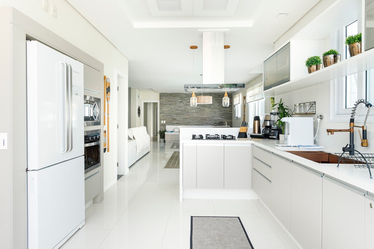 Tenha uma hospedagem mágica em uma ampla cobertura localizada na Rua Dante de Patta, 300 m da praia e do centrinho dos Ingleses, com garagem ampla (para dois carros "médios") e terraço. Próxima de todo tipo de comércio (mercado com padaria a 150m, restaurantes, bancos, farmácia...). Podendo ser feito tudo a pé. Além disso, dispomos de fechadura com teclado numérico para que seja possível o acesso ao apartamento através de senhas (self check-in).