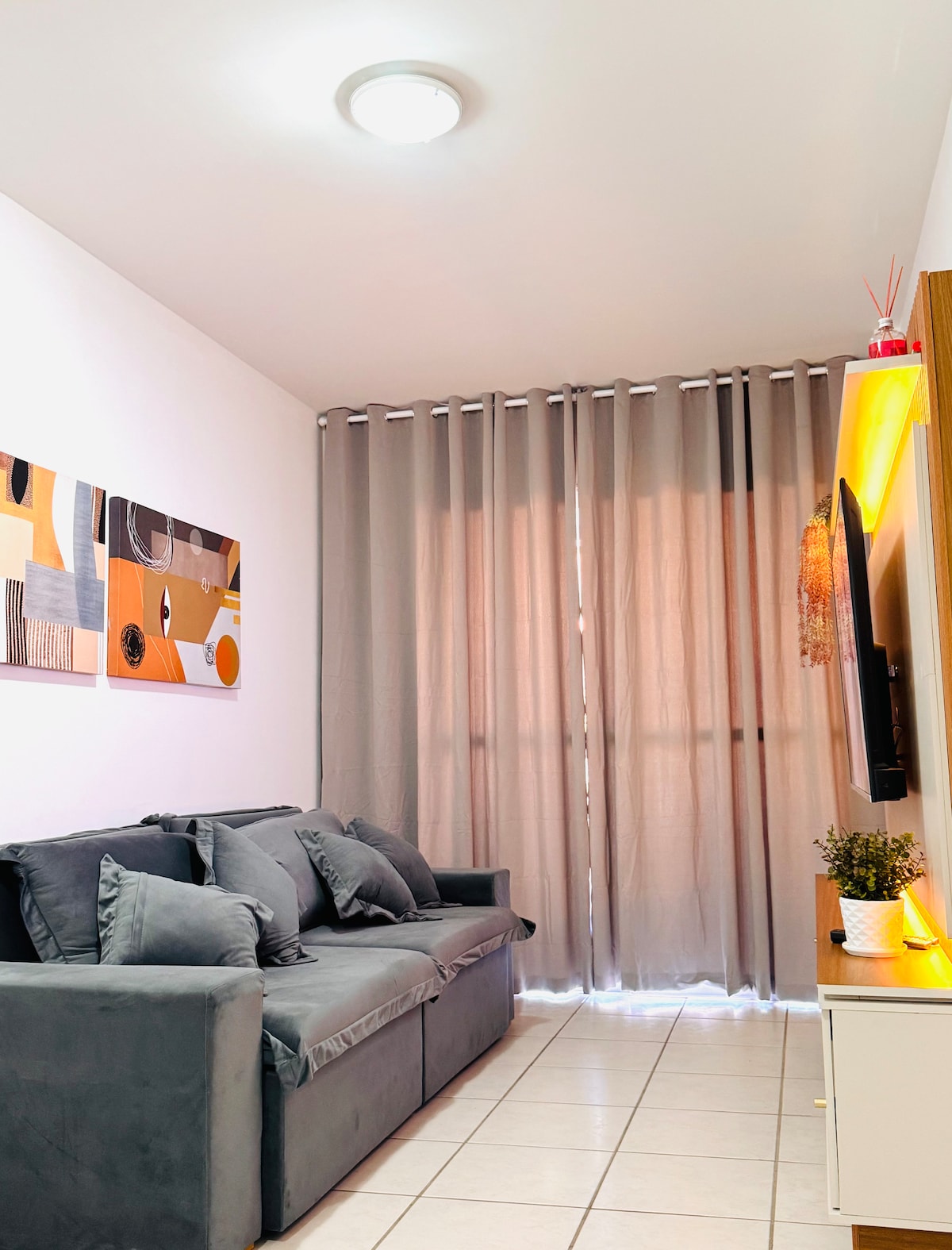 O Loft Mar Mediterrâneo acomoda até 4 pessoas e está a 700m da Praia do Morro. Possui 2 banheiros (1 suíte), sala espaçosa com sofá-cama, cozinha equipada com fogão, AirFryer, geladeira de 375L e todos os itens novos, além de uma área externa com churrasqueira. Conta com garagem privativa (carros compactos de até 4,45mts) e lavanderia, é ideal para quem busca conforto e praticidade. Próximo a restaurantes, farmácias e mercados, sua localização é perfeita para explorar Guarapari.